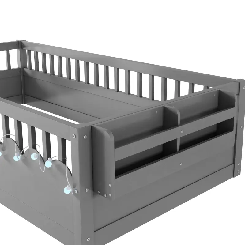 ·[Floor Bed with Light and Storage Shelf] -The twin floor bed come with LED light to DIY wrap on the bed which provide a dreamlike atmosphere and makes your kids bedtime smart and ensuring safety and comfort when getting up in the dark.The storage shelve at side of the floor bed for books that easy to touch when have reading time.The storage shelf can be installed at both left and right side.