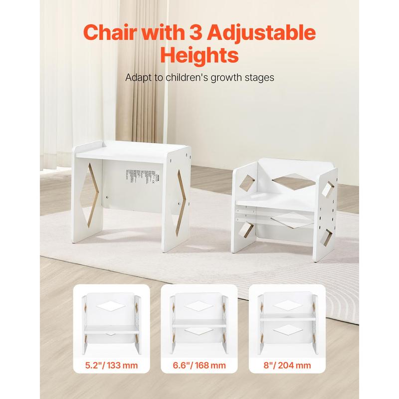 • Adjustable Height: Our children's Montessori weaning table and chair set offers three height adjustment options (5.2 in / 133 mm, 6.6 in / 168 mm, 8 in / 204 mm) to accommodate your child’s needs at various growth stages.