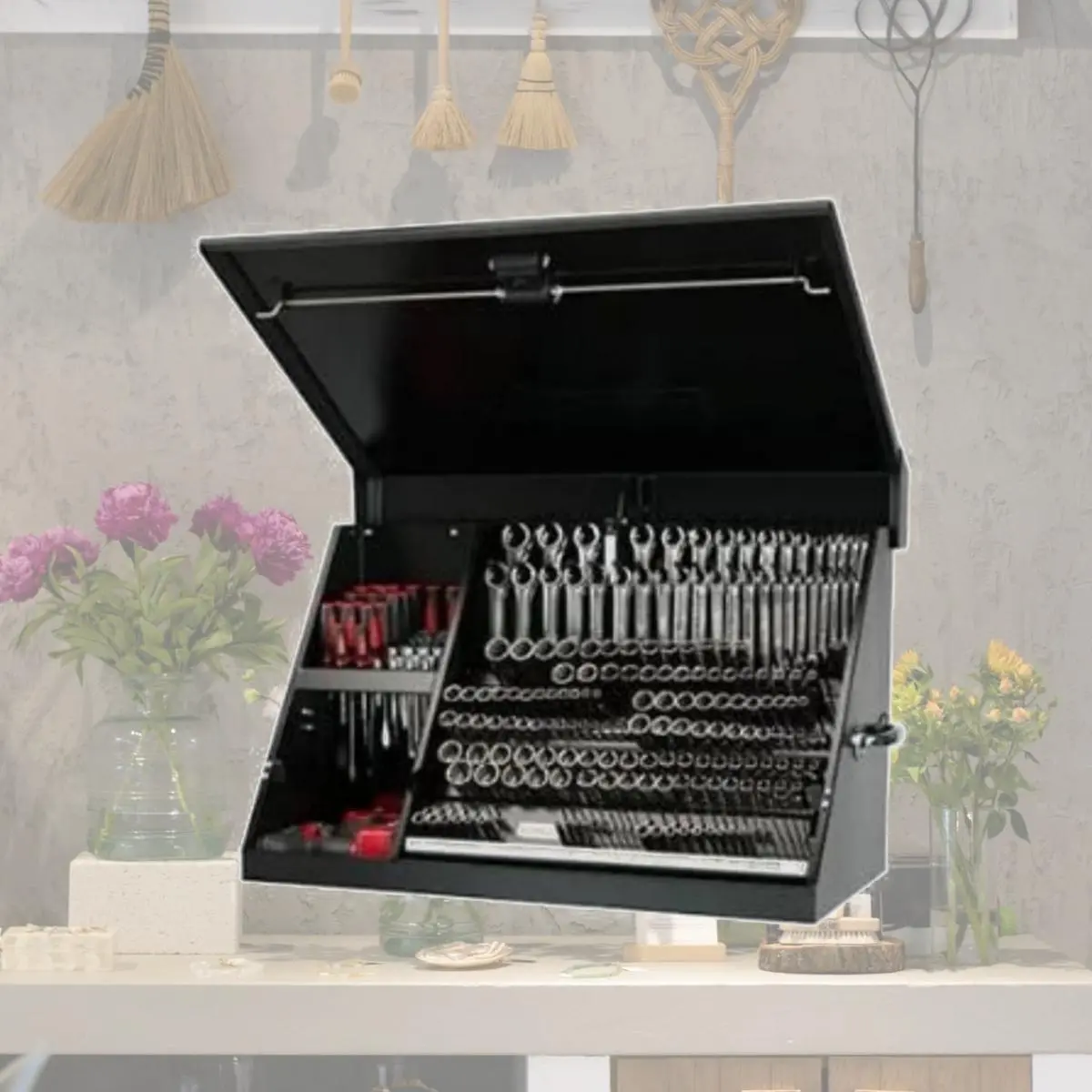 Features Multi-tier design allows you to see tools at a glance. Use in workspace or mount to your work or recreational vehicle. Durable, reliable and long-lasting performance. 16-gauge steel or heavy duty aluminum construction holds up even under off-road conditions. Lid design locks tools in place when closed. Designed to carry SAE and/or Metric tools. Weather resistant seal on lid protects tools against dust and moisture. Lock and latching system secures tools from unauthorized use. Durable UV resistant powder coat paint is built for outdoor use ( on steel toolboxes only). Specifications Size: Extra Large 36 x 17". Weight: 103.62 lbs.