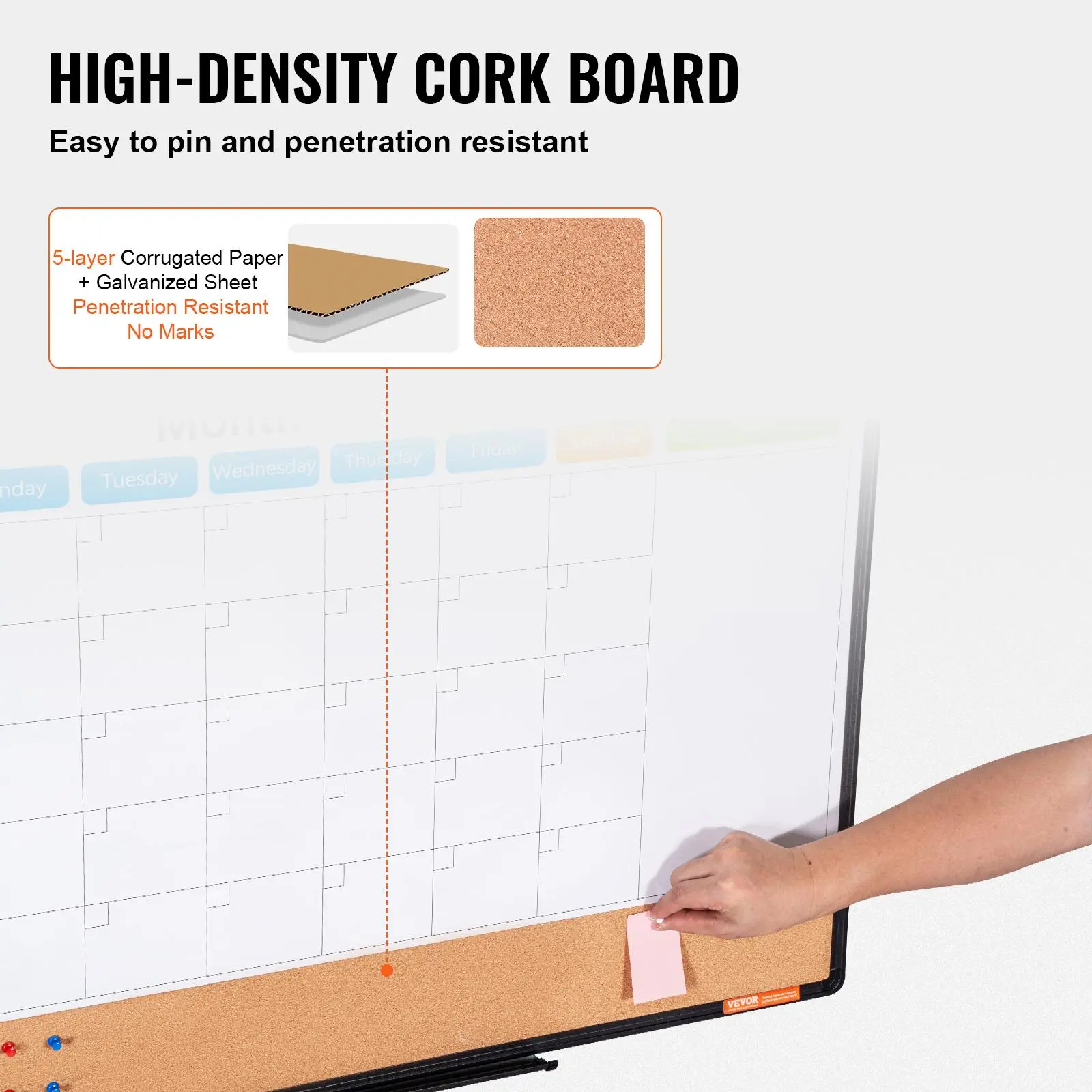 • Smooth Writing and Easy Erasing: Our magnetic whiteboard features a smooth, scratch-resistant surface for easy writing and erasing with dry-erase markers. The cork area is improved with 5 layers of corrugated paper and a galvanized sheet to avoid bulging and securely hold items. The dry-erase marker cleans off easily, and the bottom tray provides convenient storage for markers and erasers.
