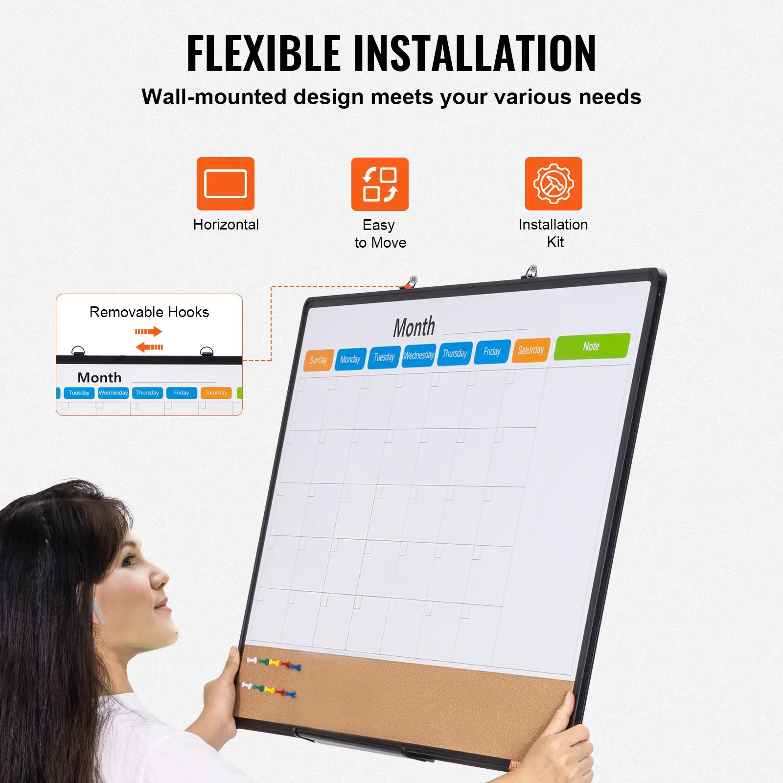 • Multi-Functional Combination Board: Our combination board measures 36 x 24 in and features a monthly calendar board, a note section, and a cork area. This seamless design helps you integrate everything you need into one place. The cork area allows you to pin photos, memos, and other materials, while the monthly calendar board lets you keep track of the latest work plans and schedules. The note section is perfect for recording important messages and reminders. It’s an ideal choice for organizing daily tasks and addressing various issues.
