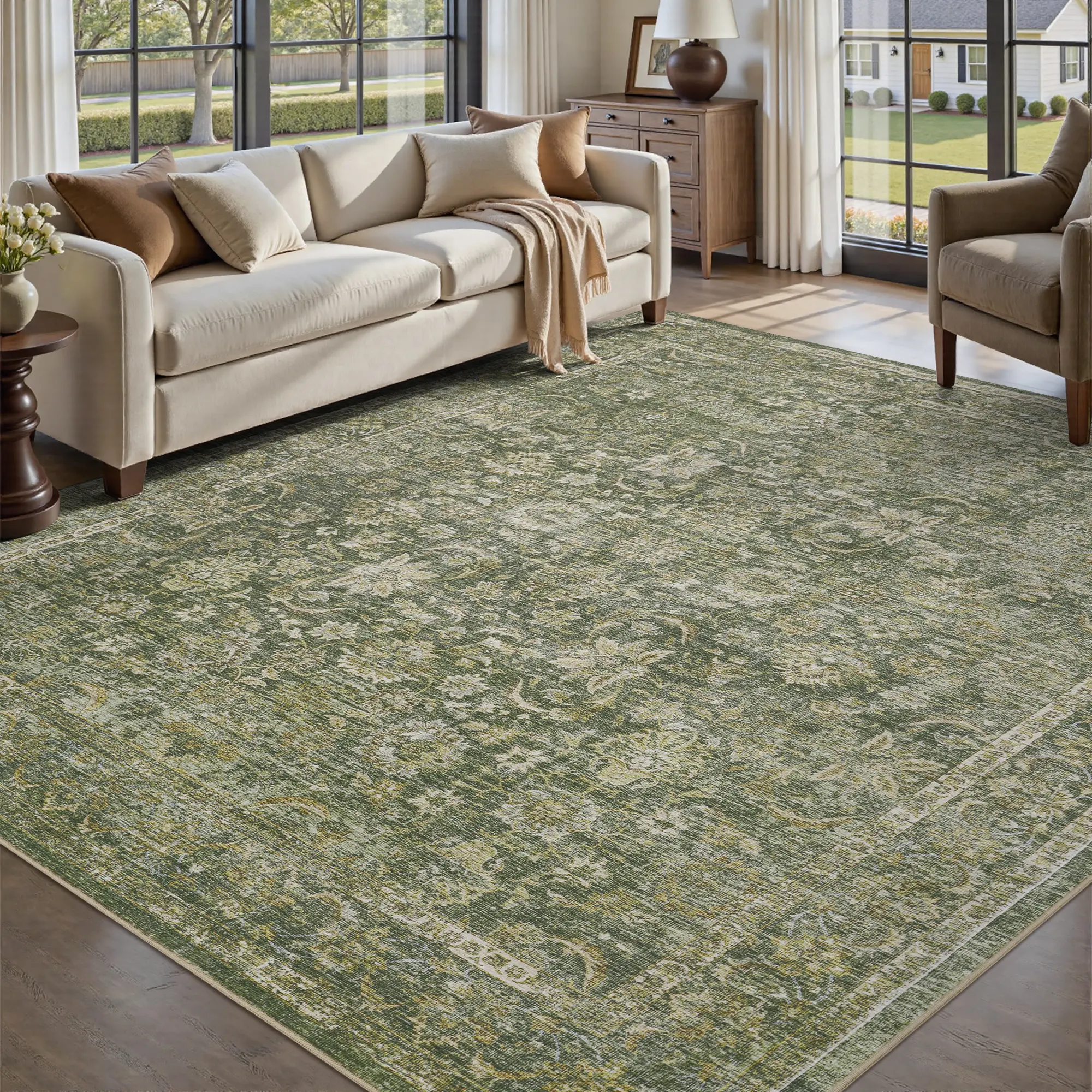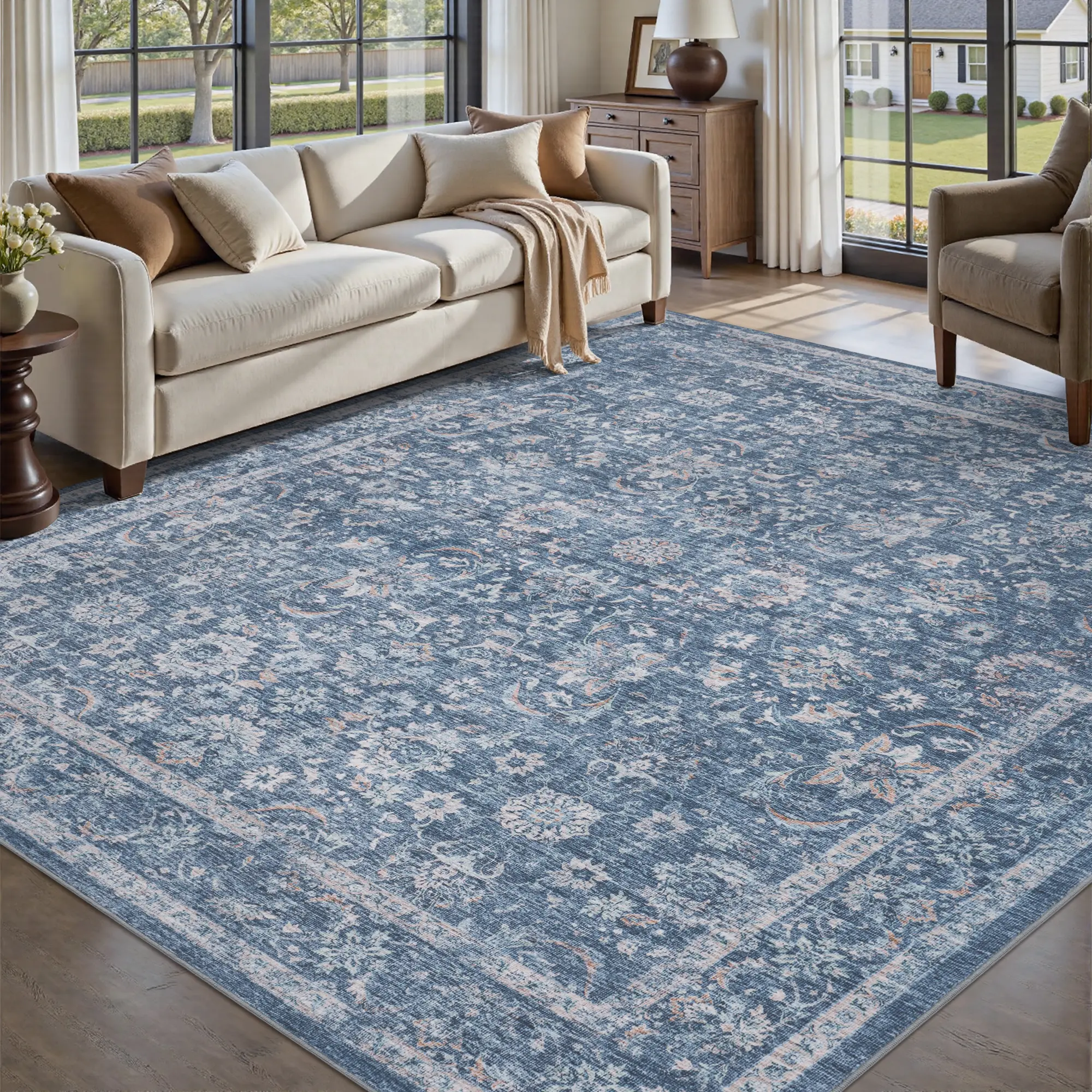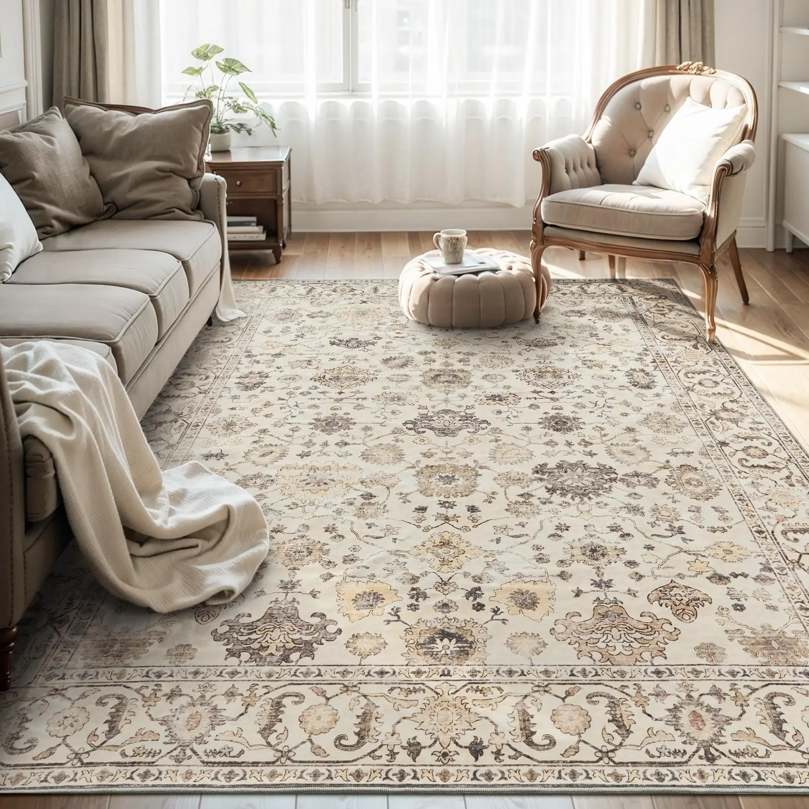 MontVoo Elegant Distressed Area Rug for Living Room Decor, Machine Washable, Easy to clean & Ultra Soft, Vintage Home Decor, Bedroom Decor, Kitchen, Office Room & Kids' Room Rug, TikTok Shop Deals