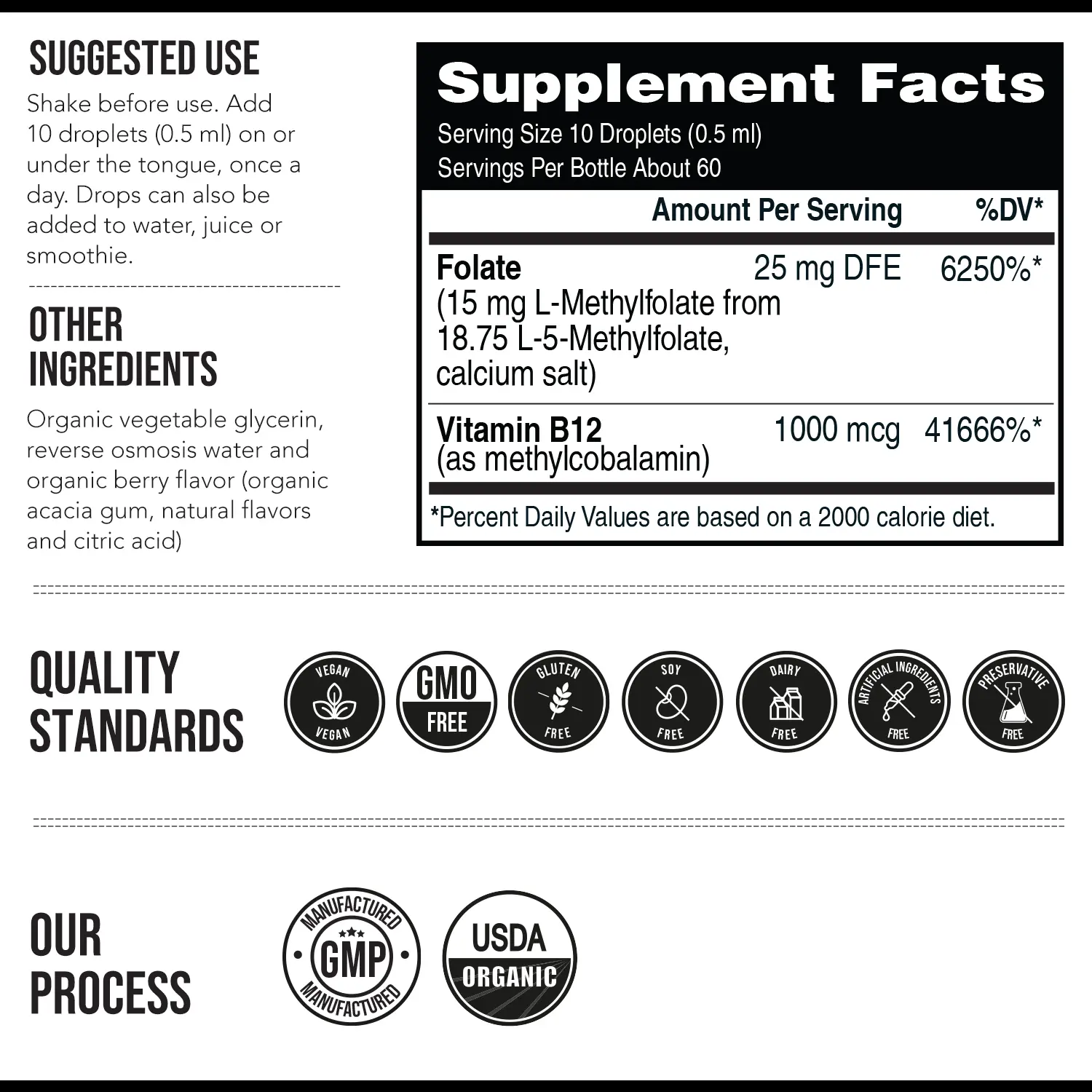·Enhanced Sublingual Absorption, Berry Flavor: The liquid sublingual form of L-methylfolate - immediately absorbs with higher overall absorption.