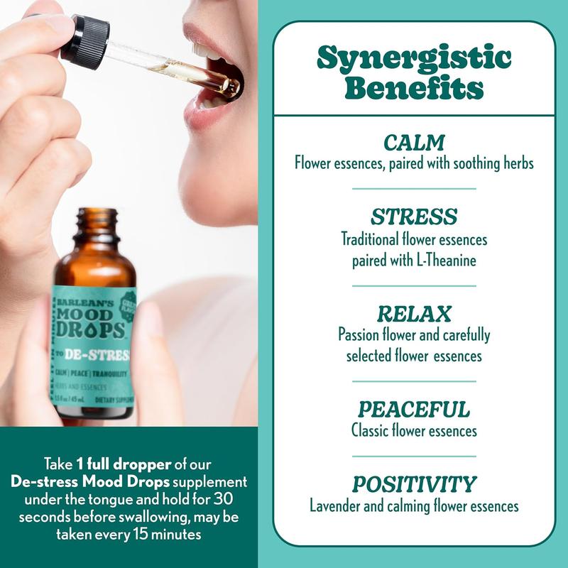 Mood Drops work simultaneously on three levels - This synergistic combination is so easy to take and helps navigate emotional challenges with ease. This approach allowed us to develop six distinct formulas, each addressing specific emotional needs: