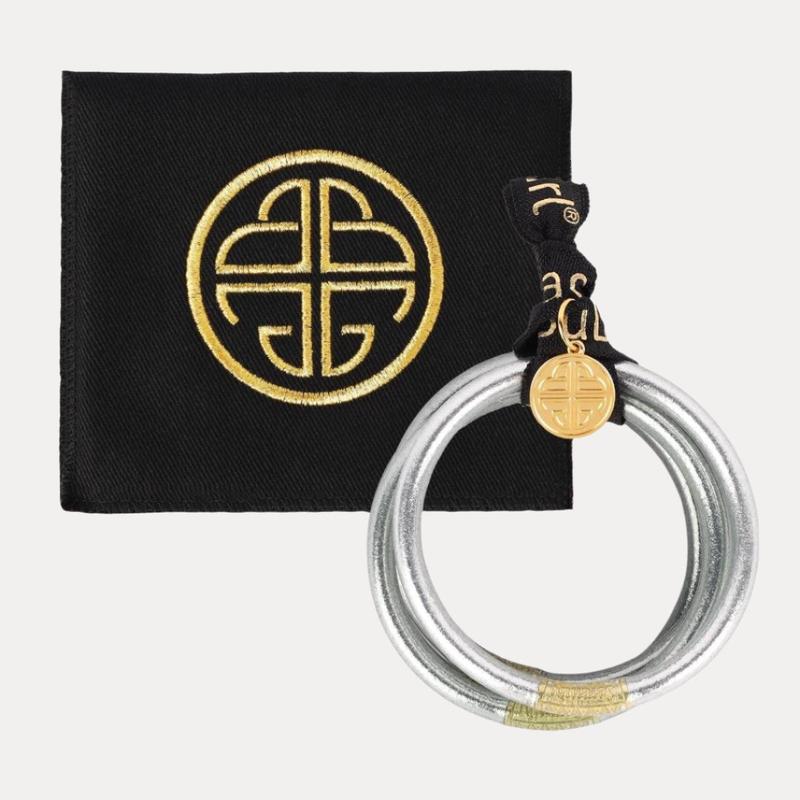 BuDhaGirl Moon All Weather Bangles® are a tribute to our celestial companion that shines upon us every night and they are the epitome of luxury in BuDhaGirl's impressive lifestyle collection. Our remarkable bangles redefine elegance with their weightless, soundless, waterproof, and TSA-proof design. Crafted to perfection, each set comprises nine bangles, symbolizing intentions for the day. Wear them anywhere, as their soundless and waterproof nature ensures seamless integration into any setting.