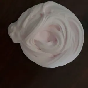 Very stretchy and a good glossy slime easy to fluff up and smells soo yummy I would eat it if it was edible but its sadly not edible. Its a cute milky pink color!