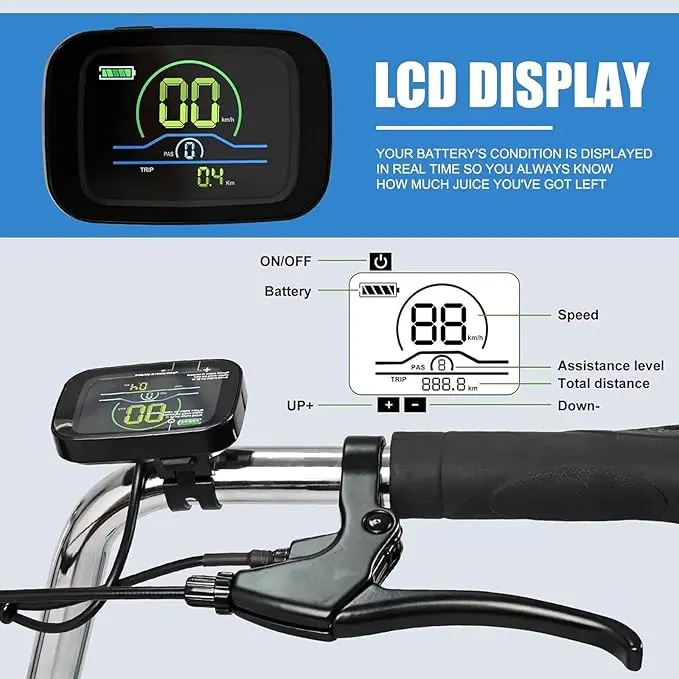 ·LCD Display and 3 Riding Modes: Our adult electric trike can be used as etrike, assisted tricycle, and normal tricycle. With the LCD display button, you could choose the electric assist level as required. It can meet your daily cycling and short trips