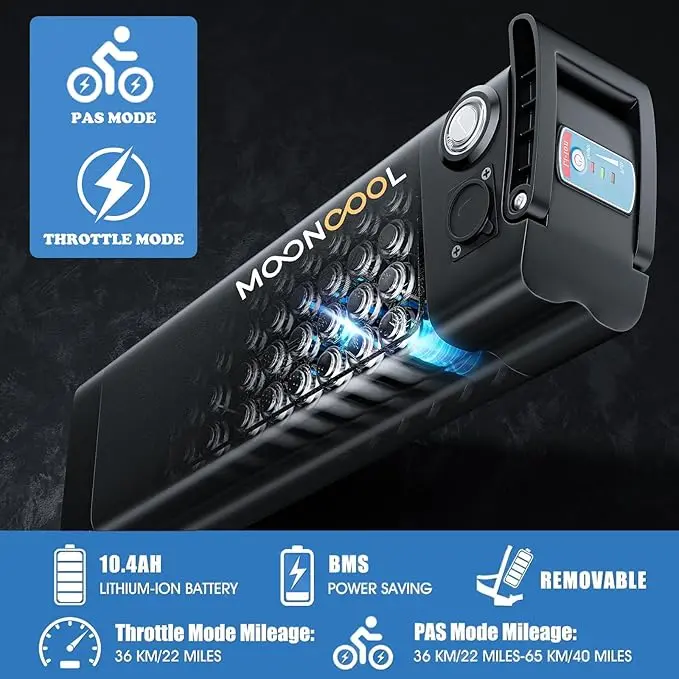 ·350W Motor and Removable Battery: 350w rear-drive motor provides reliable support and 15.5 mph top speed. Comes with a removable 36V/10.4AH battery covering a range of 25 miles per full charge