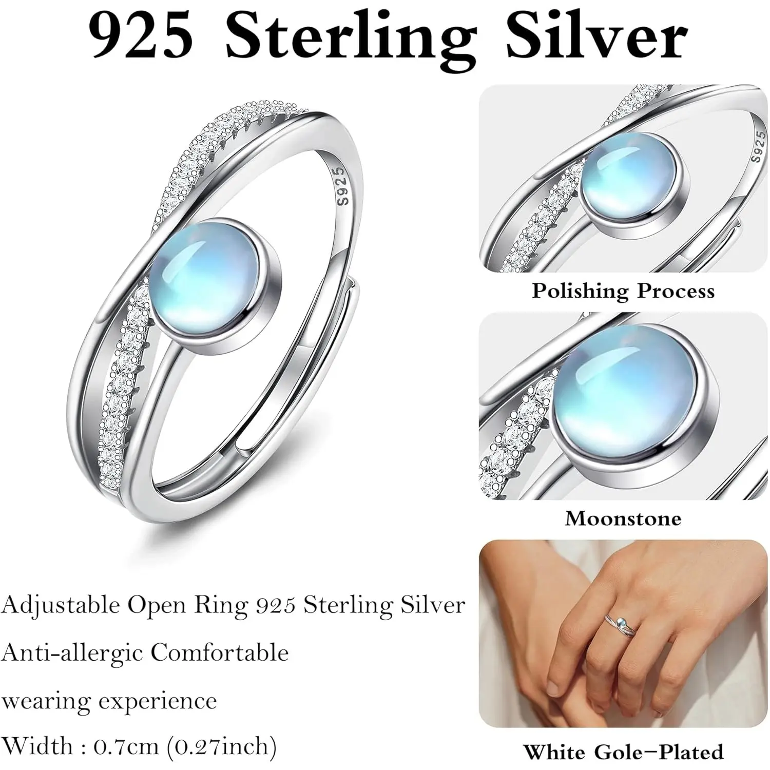 925 Sterling Silver moonstone rings Well-polished, curved and highly polished interior, make the moonstone rings absolutely comfortable to wear.