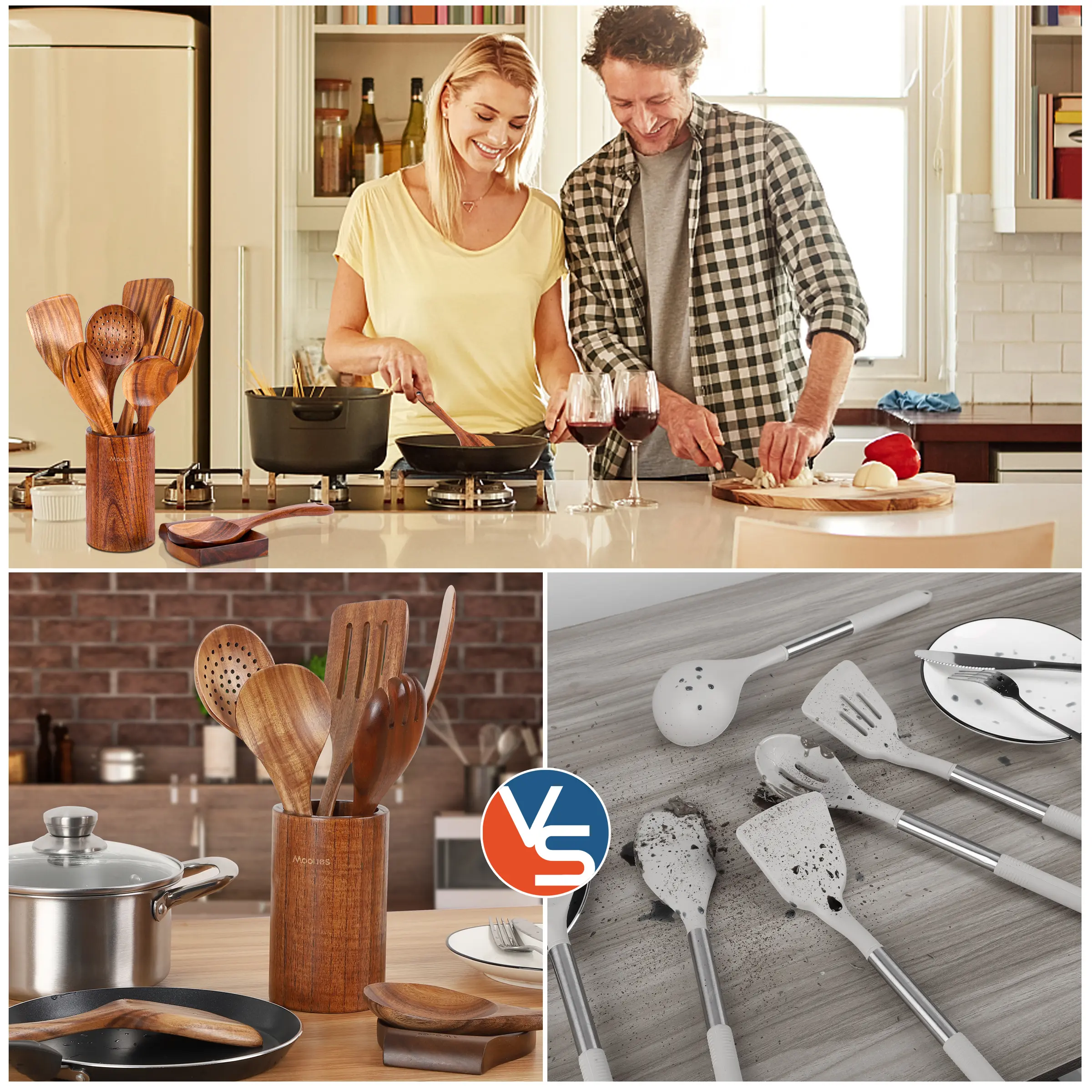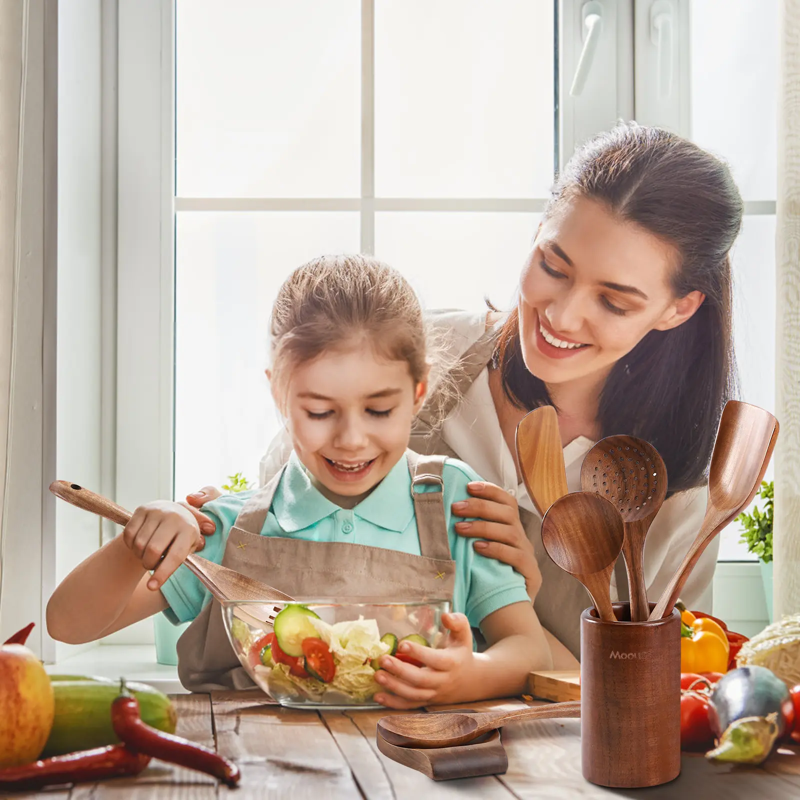 Get your Mooues Natural Teak Wooden Kitchen Utensils Set today and enjoy safe, eco-friendly, and convenient cooking!