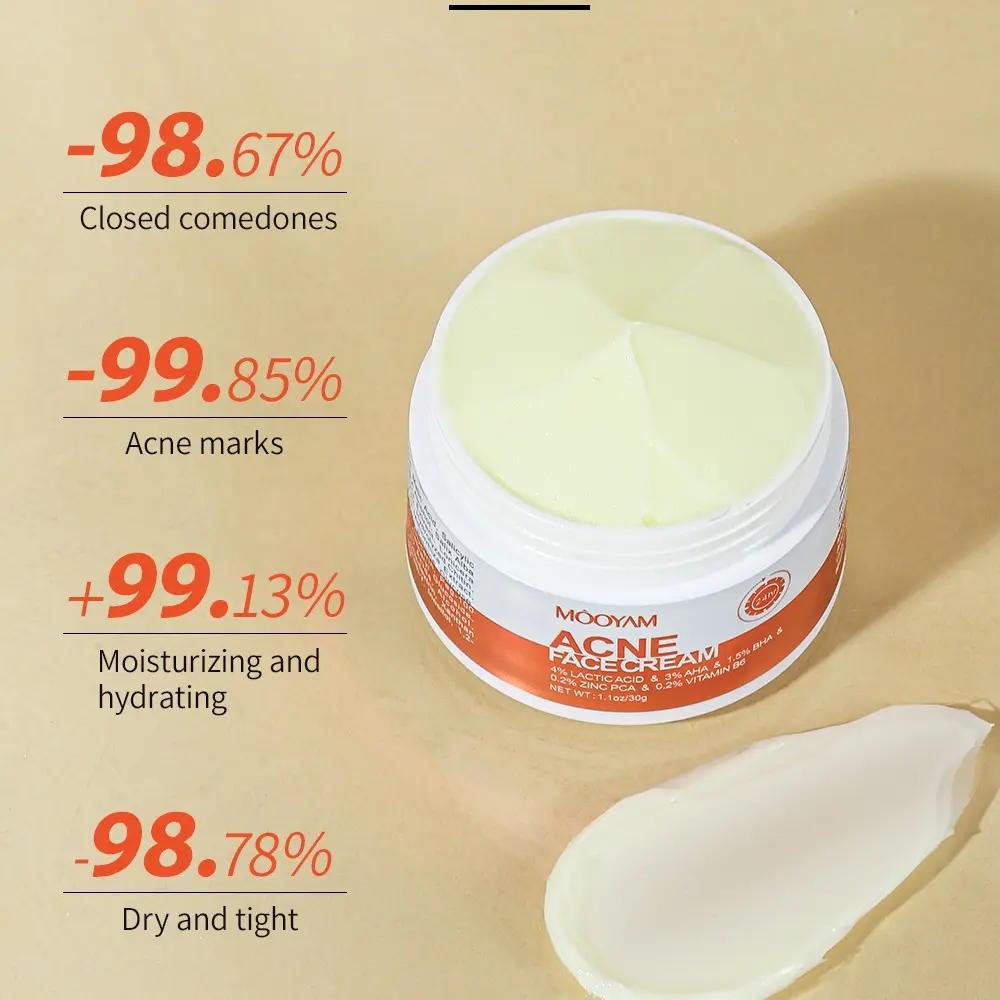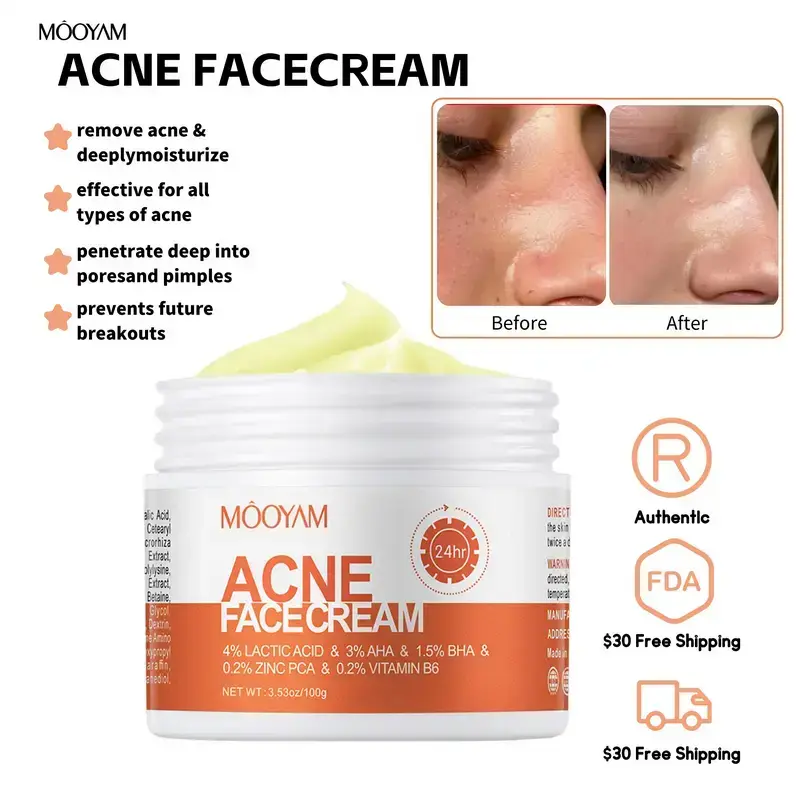 MOOYAM Acne Scar Treatment Cream 50ml is a therapeutic cream designed to reduce acne, pimples, and breakouts, clear excess oil, and deeply moisturize. It is suitable for all ages and skin types, including sensitive skin. Follow the usage directions for best results. Buy with confidence and enjoy a 100% satisfaction warranty.