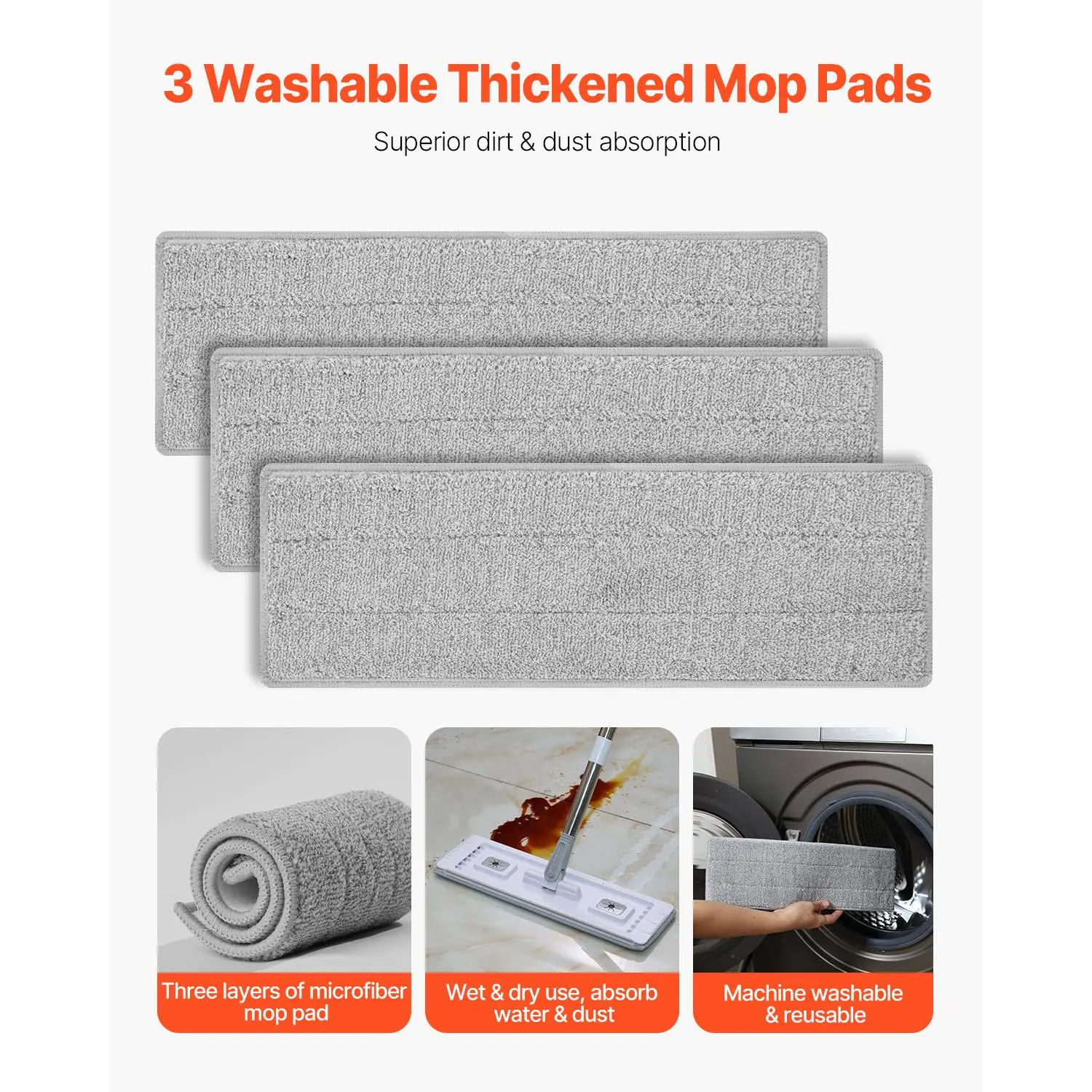 • 3 Washable Mop Pads: Our mop and bucket set comes with 3 replaceable mop pads made of advanced microfiber material, suitable for both dry and wet use. These pads provide excellent water absorption and stain removal, and are machine washable and reusable, greatly reducing cleaning costs.