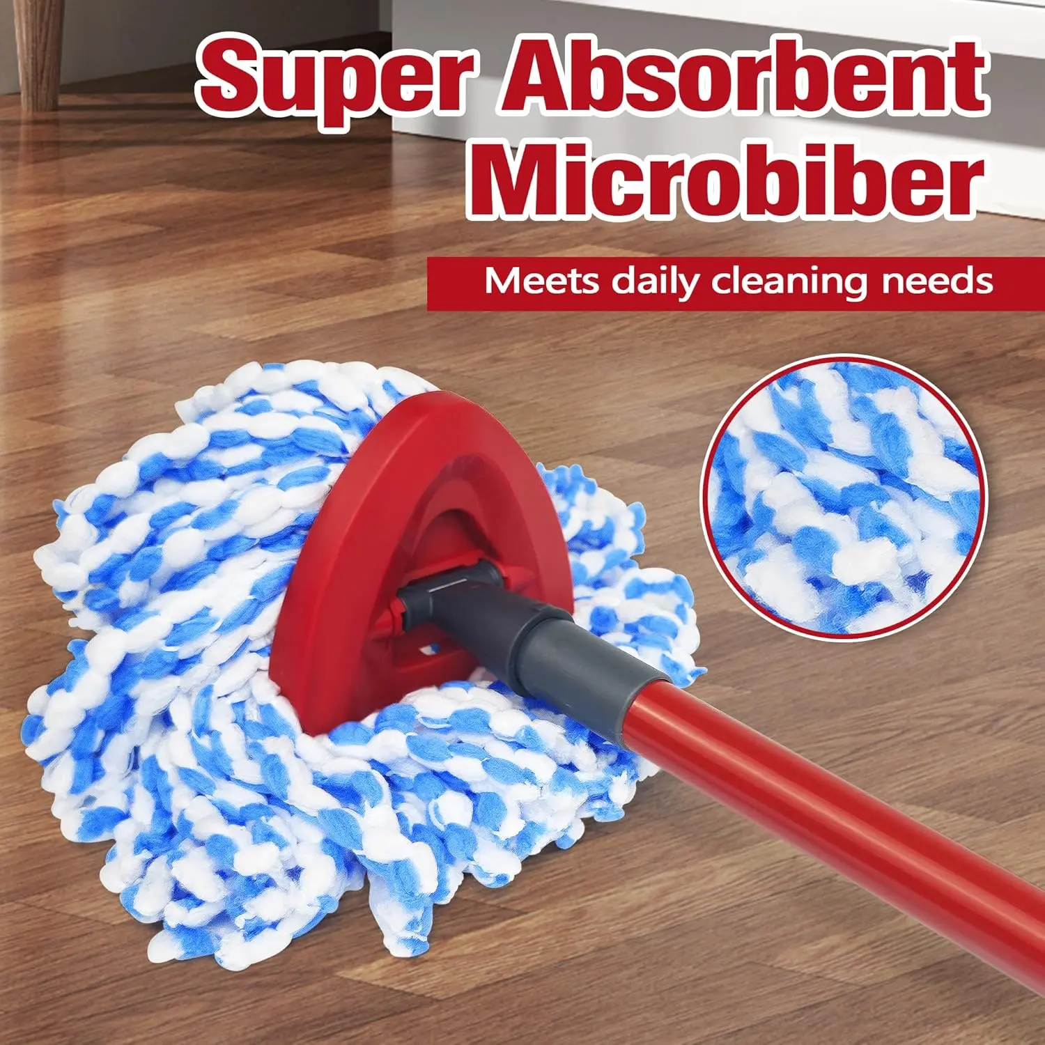 Durable Mop Heads for Ocedar Spin Mop: Package includes 2 mop replacement and 1 mop base. The mop refills are made of high-quality microfiber, which makes it super absorbent. It'll be a partner for your floor cleaning