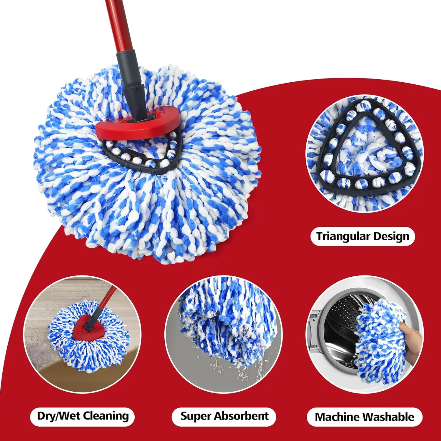 Machine Washable: The replacement mop heads can be simply washed and dried in the washing machine, which frees your hand from touching dirty water. Ideal for maintaining the cleanliness of your , office, kitchen, living room, and bathroom
