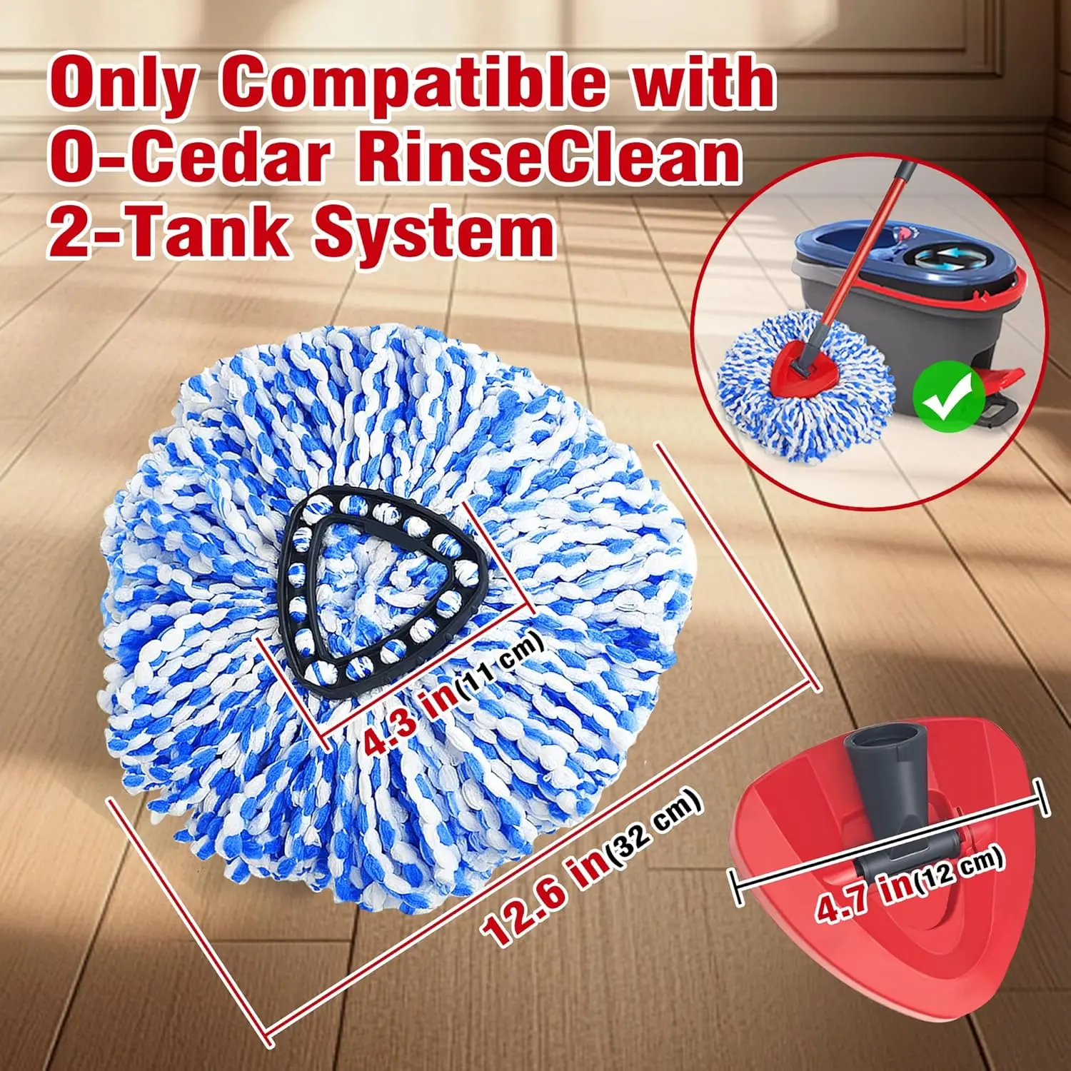 Only Compatible with EasyWring RinseClean 2 Tank System: Please note that this mop replace and mop base don’t fit for O Cedar EasyWring 1 Tank Spin Mop & Bucket System