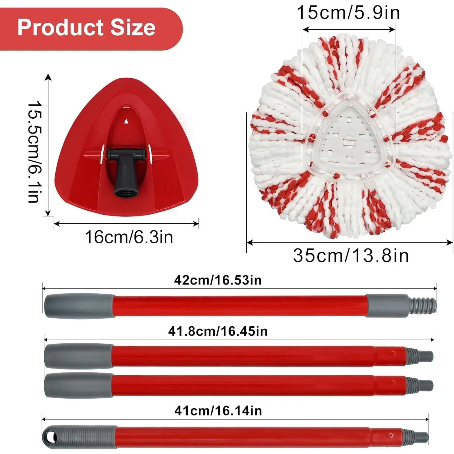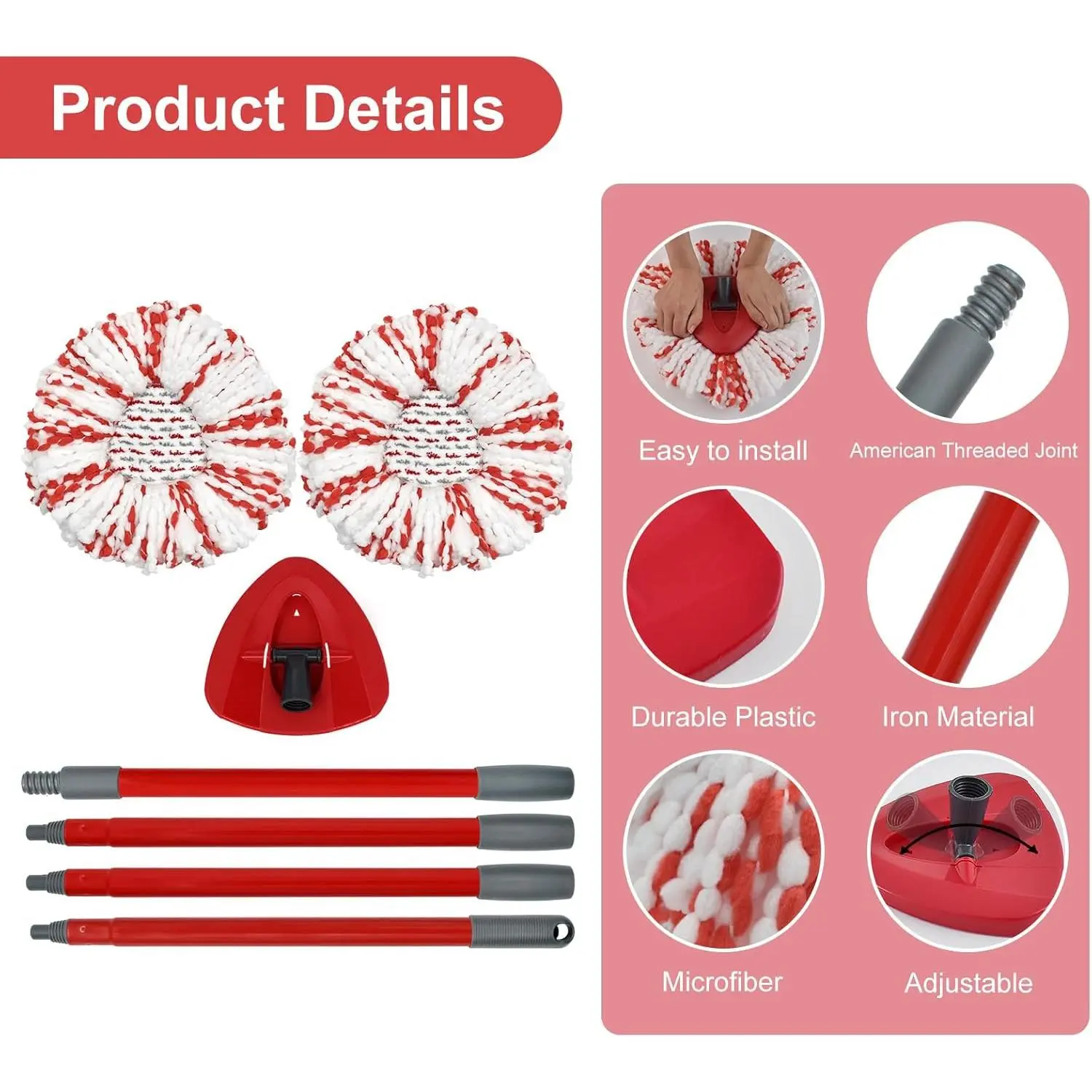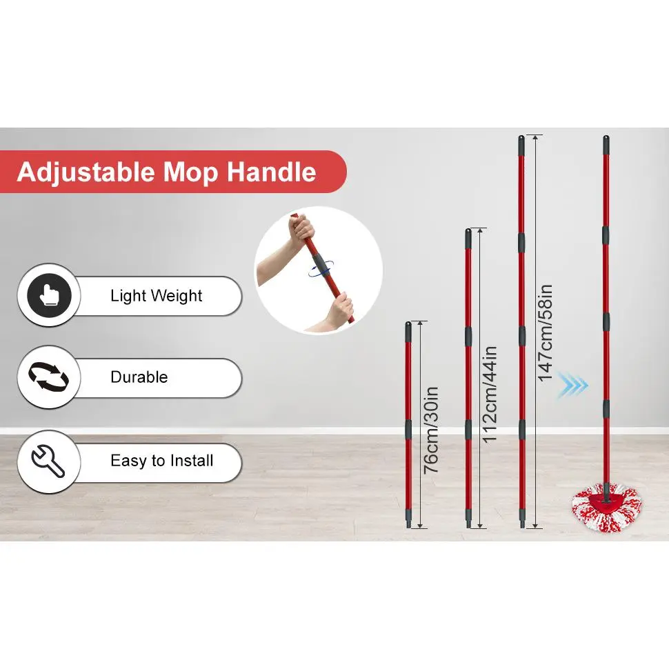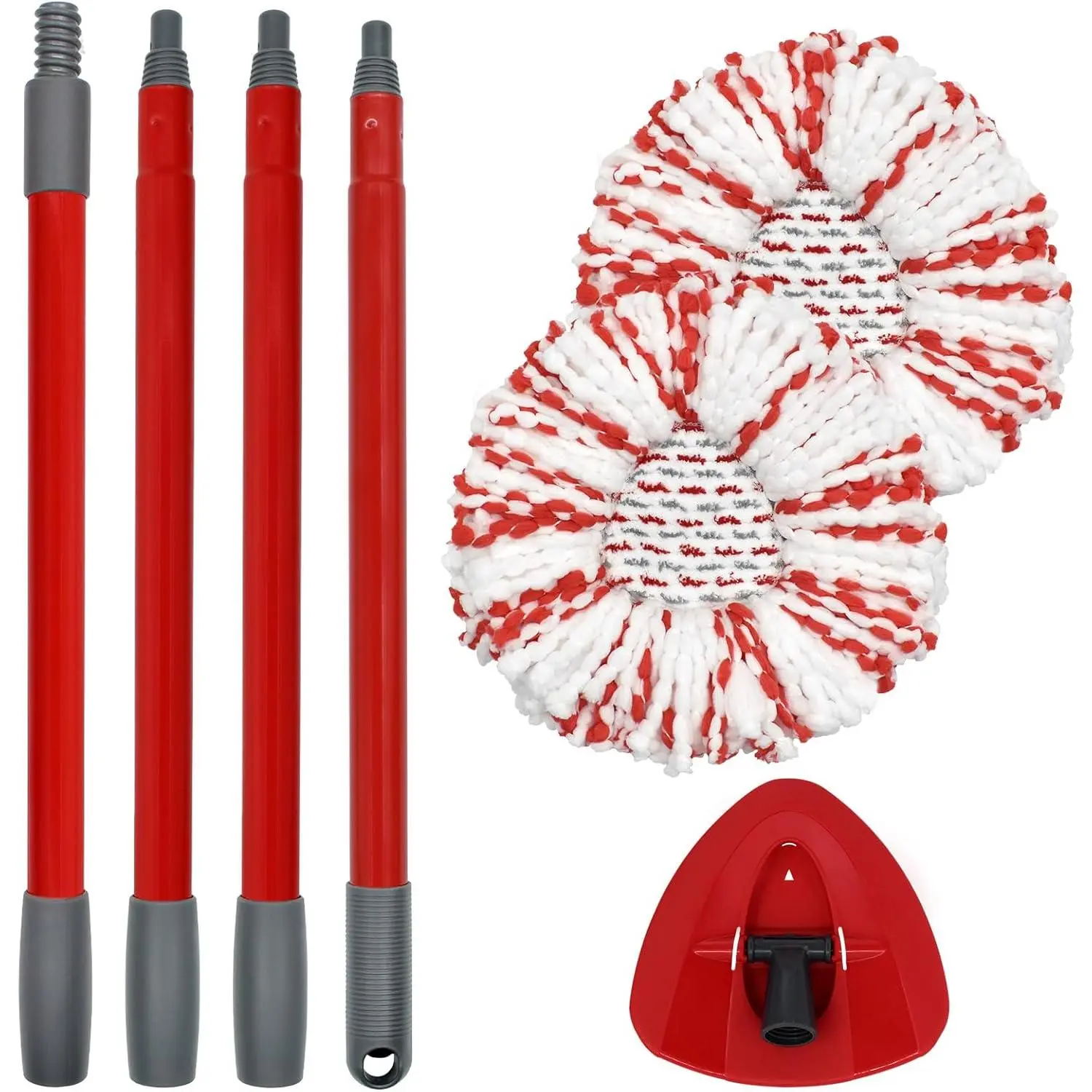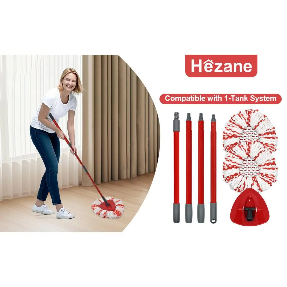 Good cleaning combination:4-section mop handle + 2pcs Mops Heads + 1 Mop Base Combo Set Compatible with O-cedar .It's suitable for a wide range of floor types, including delicate wooden floors, laminate, bamboo, hardwood, tile, and marble.NOTE: 2pcs mop heads replacements, mop base only compatible with 1-Tank system.Exceptional Mop Stick Replacement:Our mop handle for O Cedar is engineered for both comfort and functionality.Crafted from premium iron material , durable aluminum alloy, it offers a perfect balance of lightness and strength.The ergonomic grip conforms to your hand, making those long cleaning stints a breeze.With its telescoping mechanism, you can effortlessly adjust the length 30-58in.Whether you're mopping the kitchen floor or targeting cobwebs in high corners, the handle adapts to your needs.Premium Mop Replacement Heads:The two microfiber Mop replacement heads compatible with Ocedar included are the workhorses of this set.Our advanced microfiber technology ensures maximum absorbency.Spills are quickly soaked up, and stains stand no chance.It can easily absorb pet hair, dust, and deal with stubborn stains, Give you a clean and comfortable home.Sturdy Mop Base:Our mop base is built to endure.Made from durable plastic, it provides a rock - solid platform for the mop head.Engineered for seamless integration for Ocedar's heads and handle, it ensures a smooth cleaning experience.Easy to Use:Using the mop replace head accessorles set is simplicity itself. Attach the mop head to the base, connect the mop stick (pole) , and you're set to clean. The swivel - head design allows for unrestricted movement, letting you reach every nook and cranny, even under furniture and in tight corners. After cleaning, just detach the head, wash it, and store the set away until the next cleaning session.