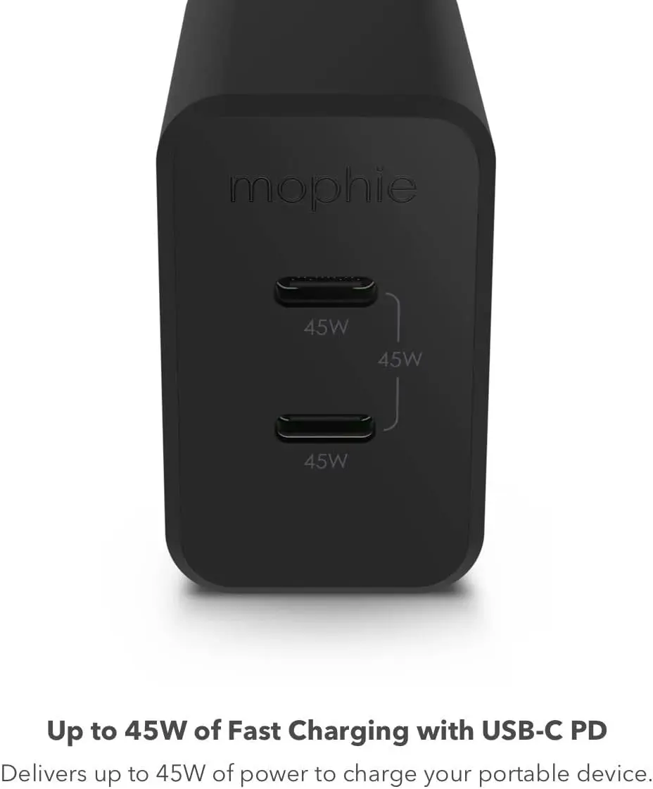 Charge your devices quickly and efficiently with the Mophie Speedport 45 USB-C GaN Charger. This 45W charger is perfect for a variety of devices including iPhone, MacBook Pro/Air, iPad Pro, Samsung Galaxy, and Google Pixel.