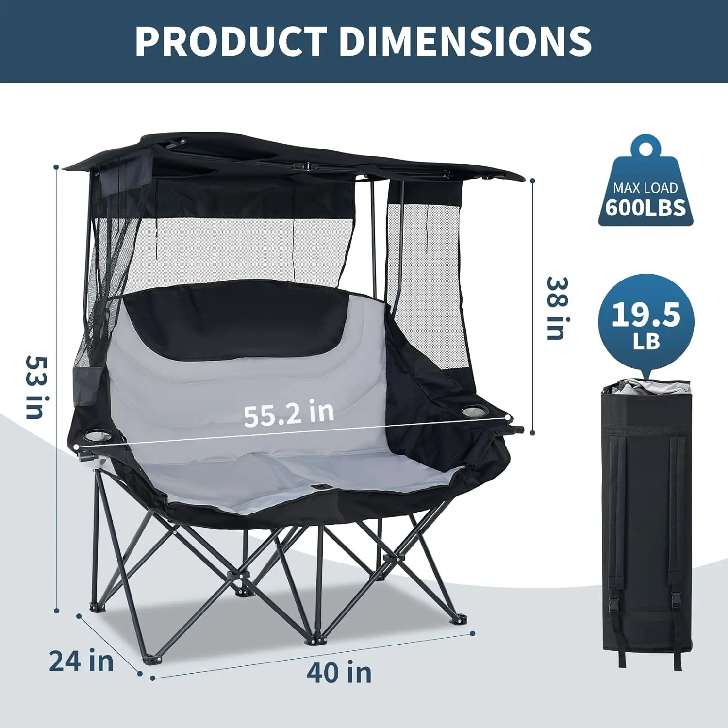 Stay protected in style with the MOPHOTO Loveseat Camping Chair, featuring an oversized adjustable canopy that delivers 360° sun and rain coverage for two. Whether you're at the beach, campsite, or backyard, this chair ensures you enjoy the outdoors in complete comfort and protection.