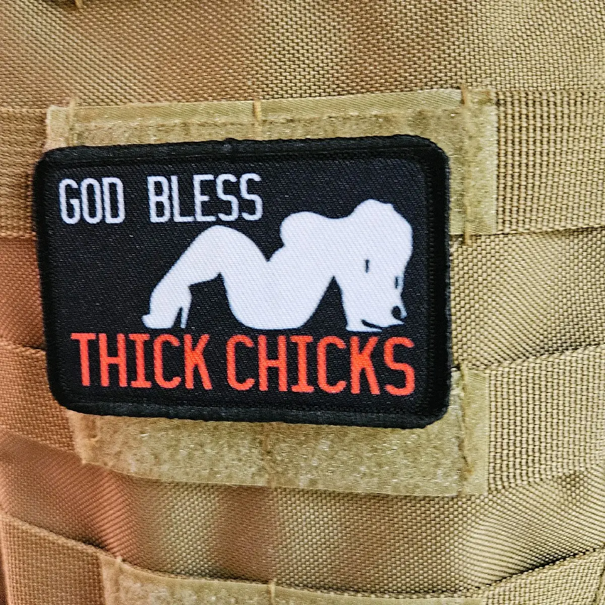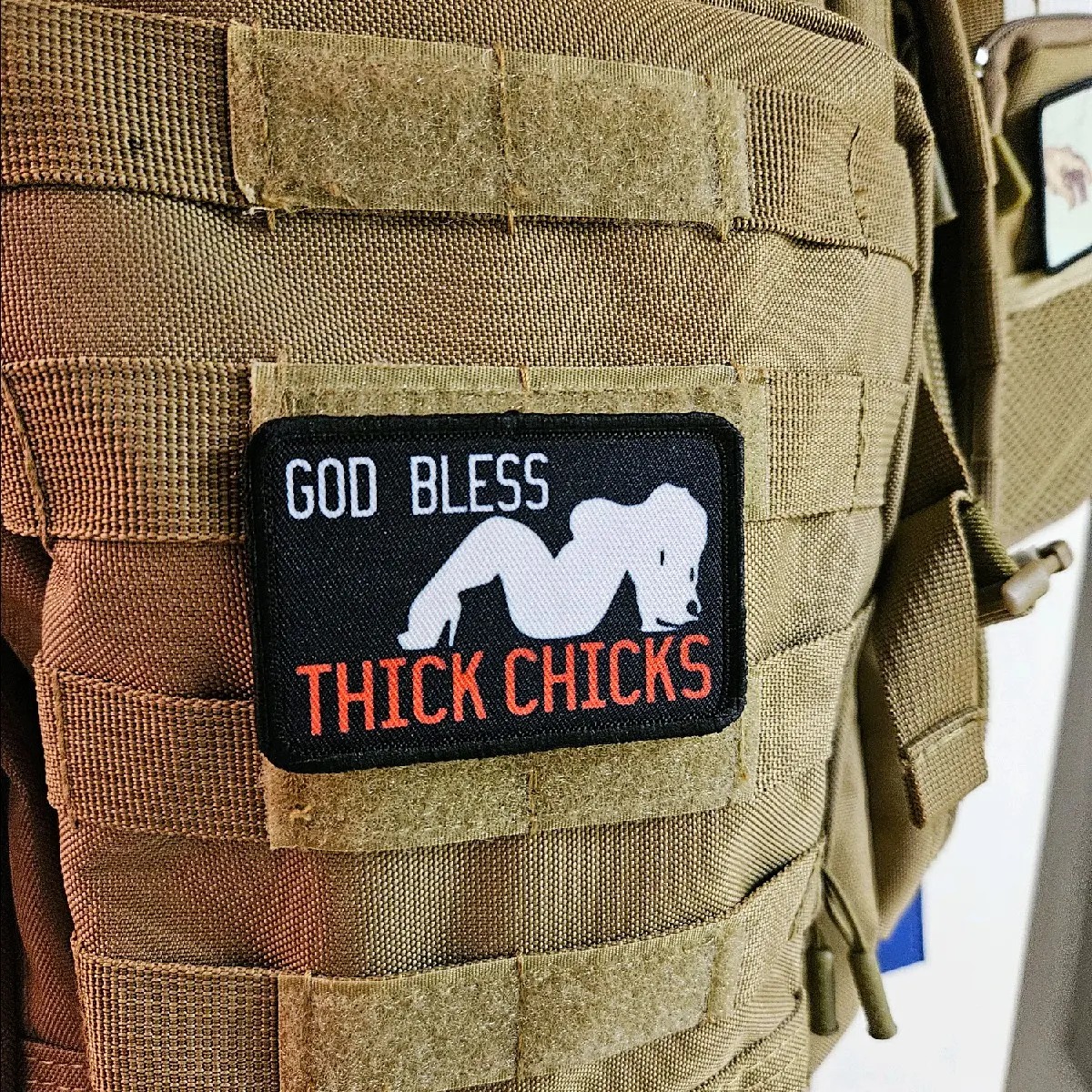 God bless thick chicks meme 2"x3" removable morale patch with hook and loop backing