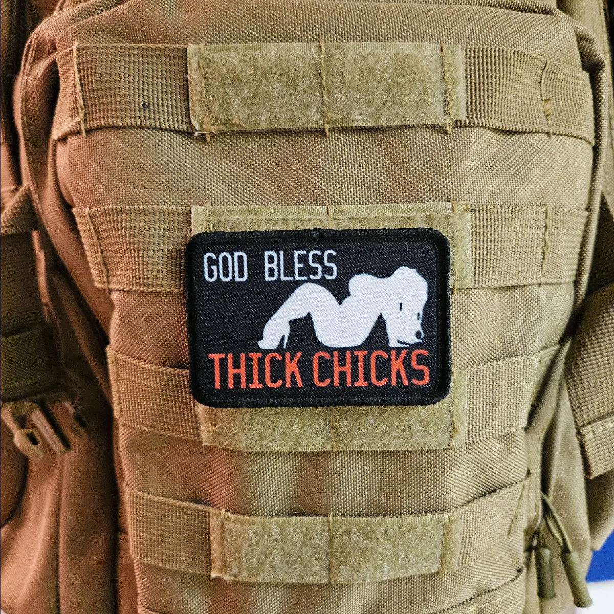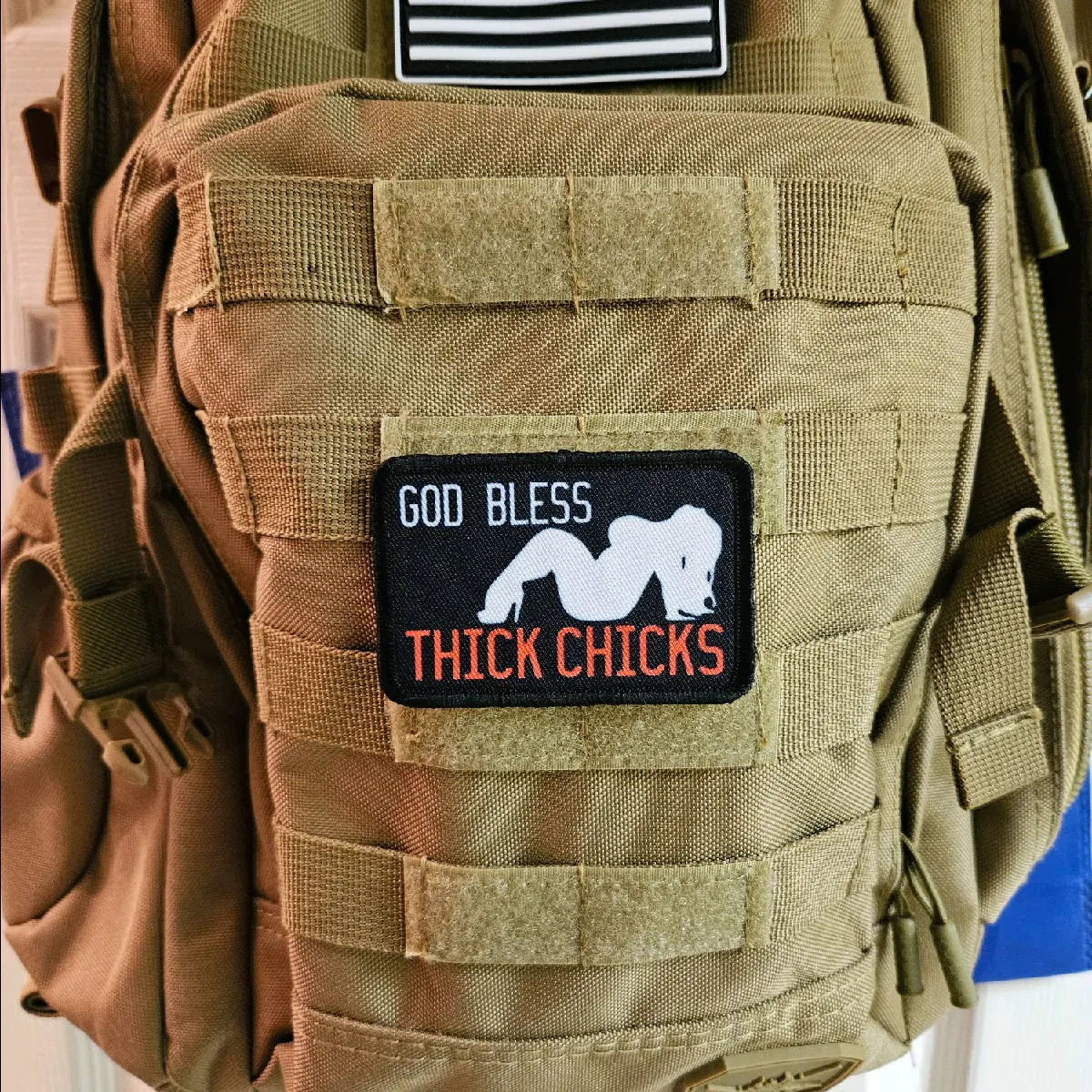 This 2"x3" patch is perfect for those who want to make a statement with their fashion. The God bless thick chicks meme design is both humorous and empowering, making it a great addition to any outfit.