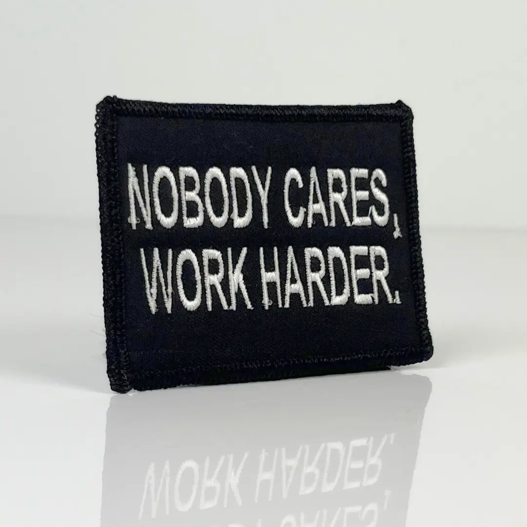 Excuses don’t build anything. The Nobody Cares, Work Harder Morale Patch is pure, unfiltered truth for those who grind in silence and let the results speak. White text stitched over a black polyester background delivers a clear message—one that doesn’t need your feelings, just your effort.