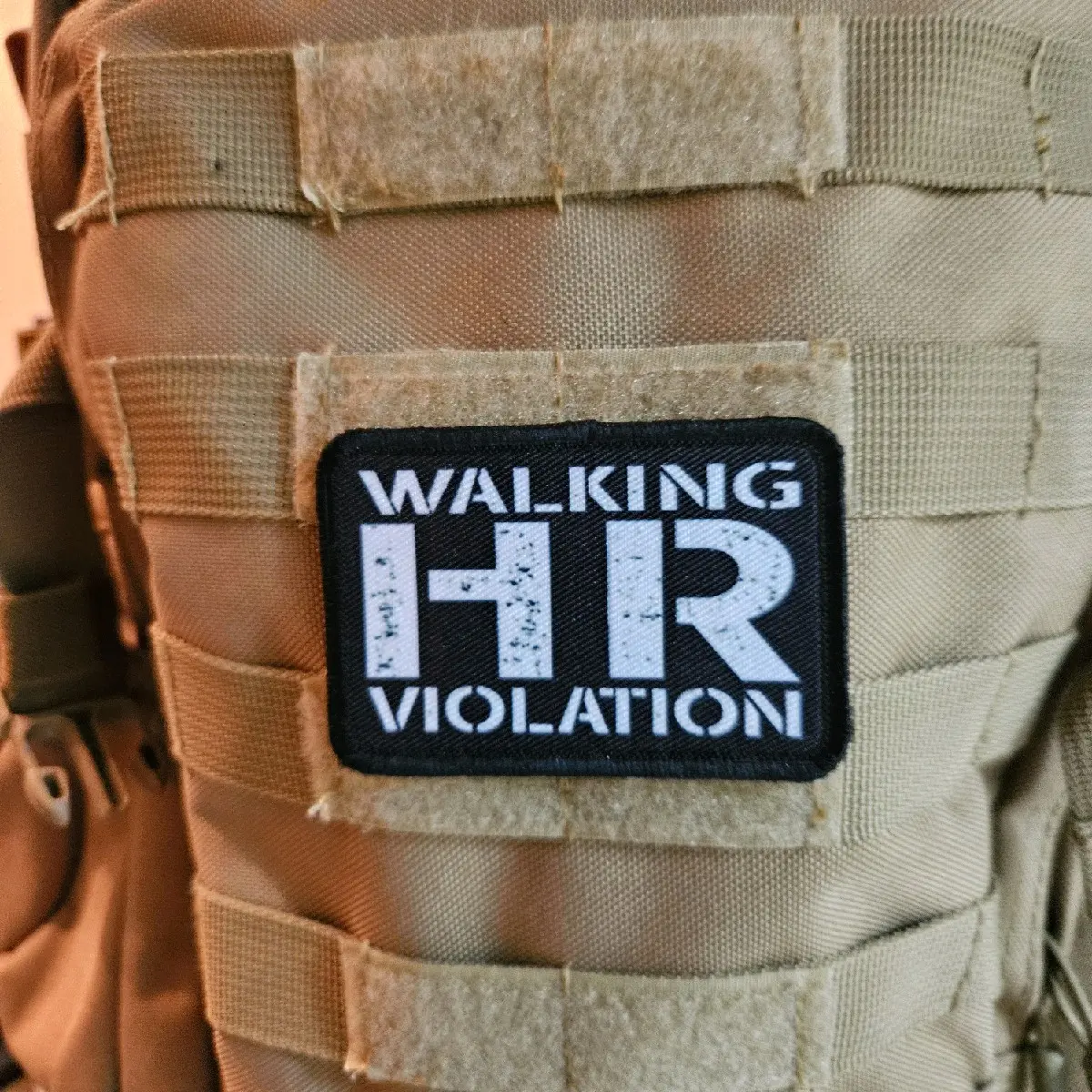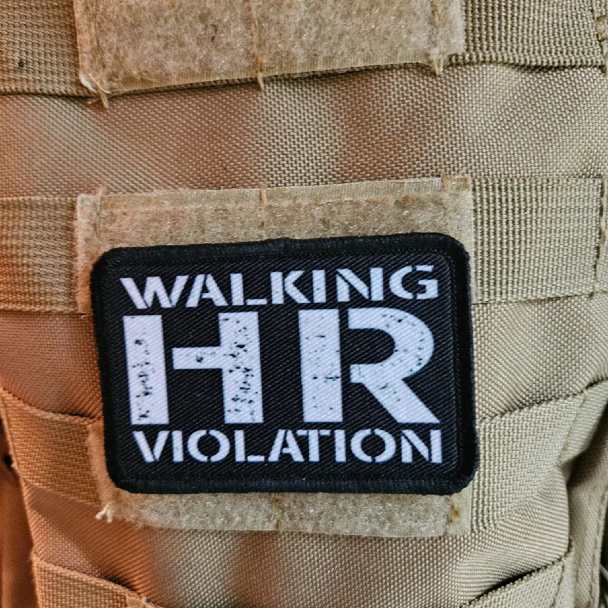 Overall, the Walking HR violation Morale Patch is a great way to add a personal touch to your gear. Its small size and hook and loop backing make it a practical choice for those who enjoy frequent patch changes.