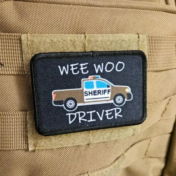Wee woo driver sheriff pick-up brown version driver funny 2"x3" removable morale patch with hook and loop backing