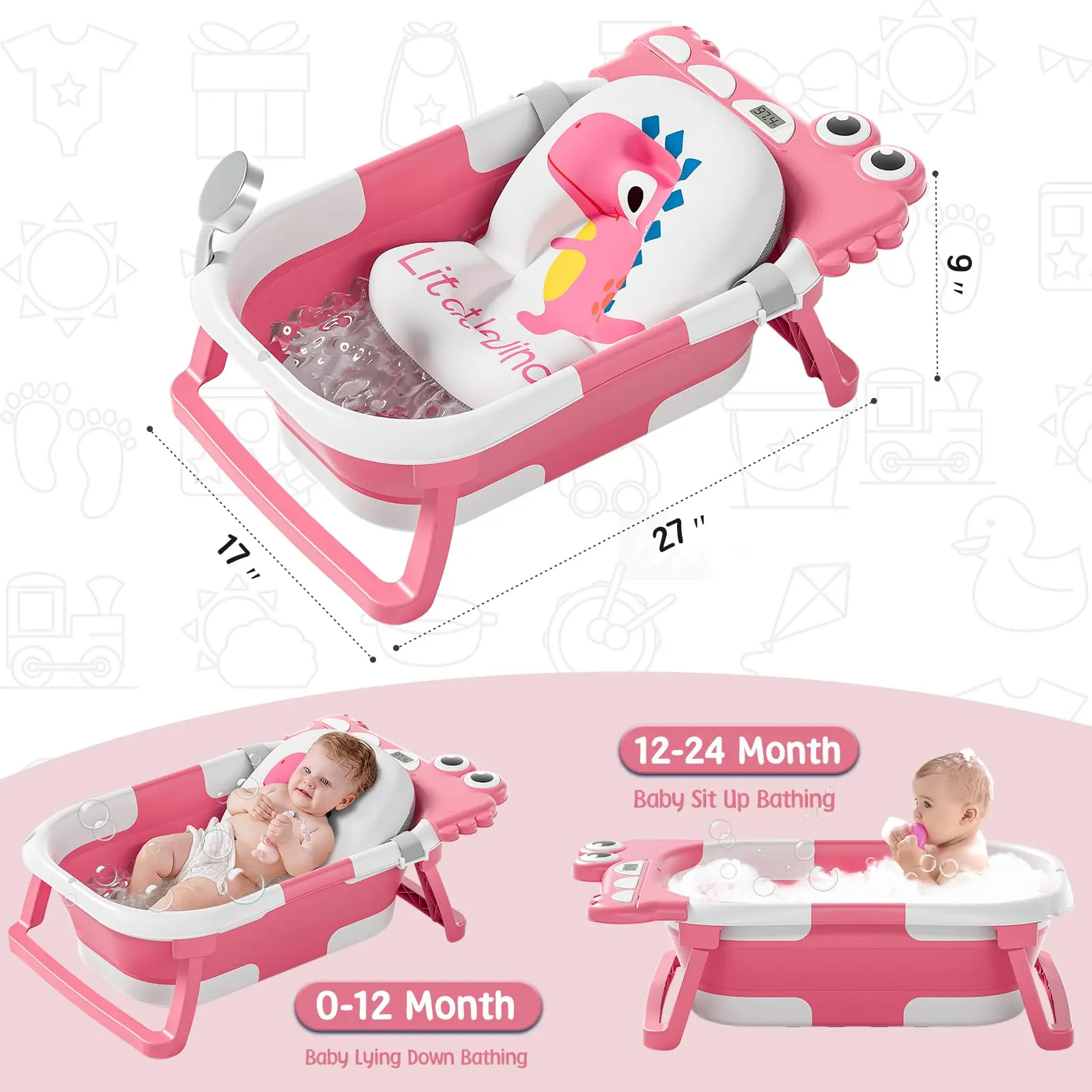 • Comes with a detachable cushion, providing support for the baby’s head and neck. The soft cushion floats on the water, creating a comfortable bath experience, minimizing fussiness.