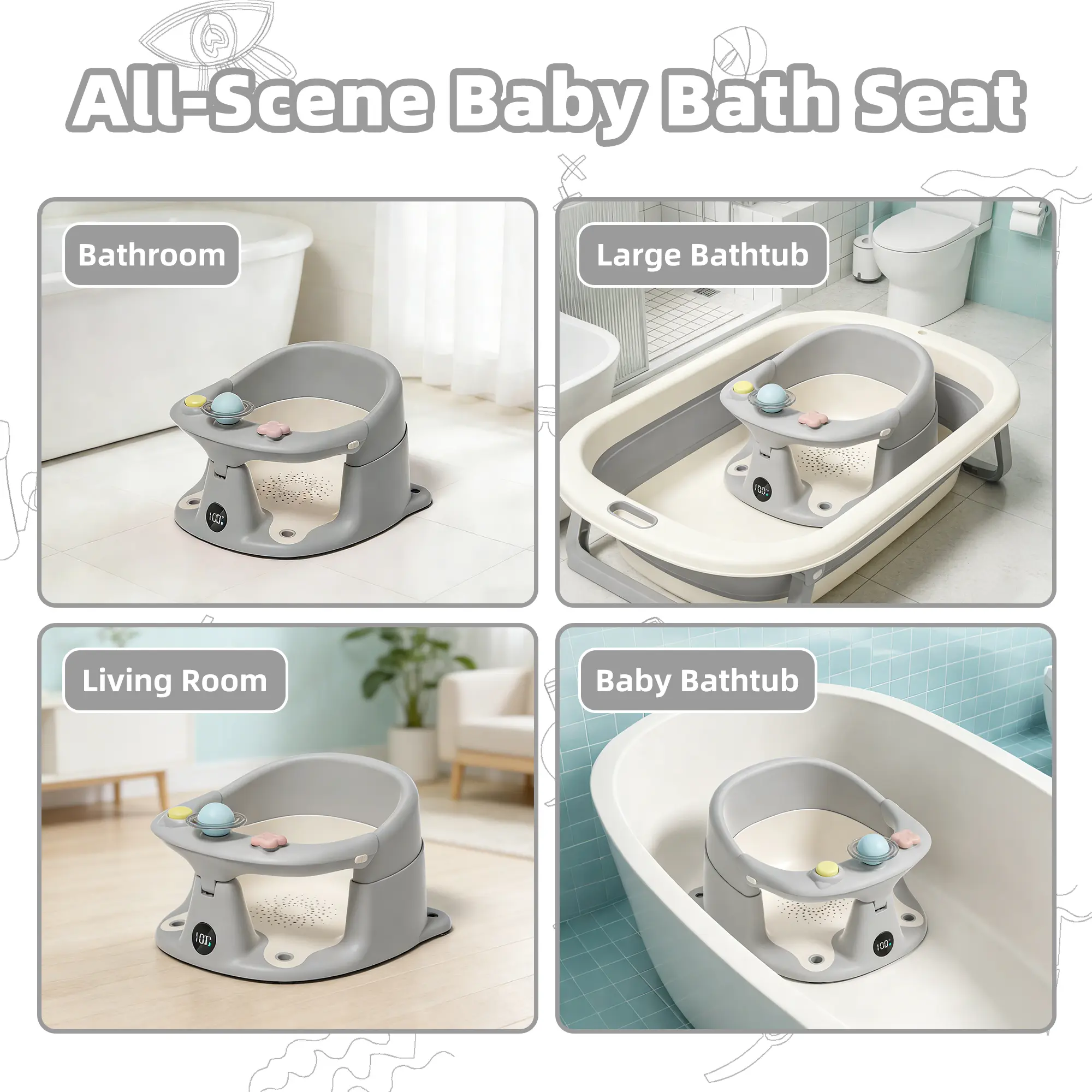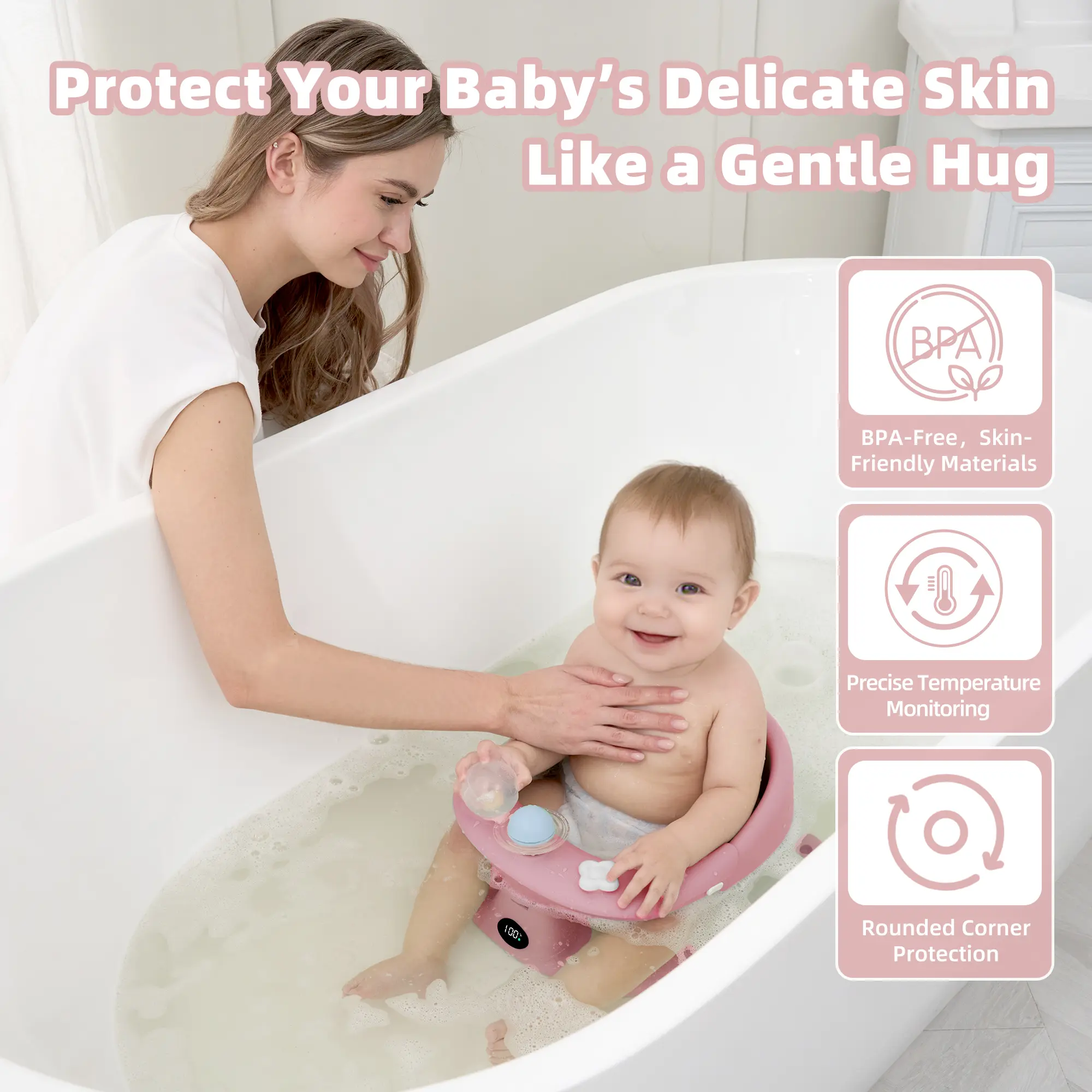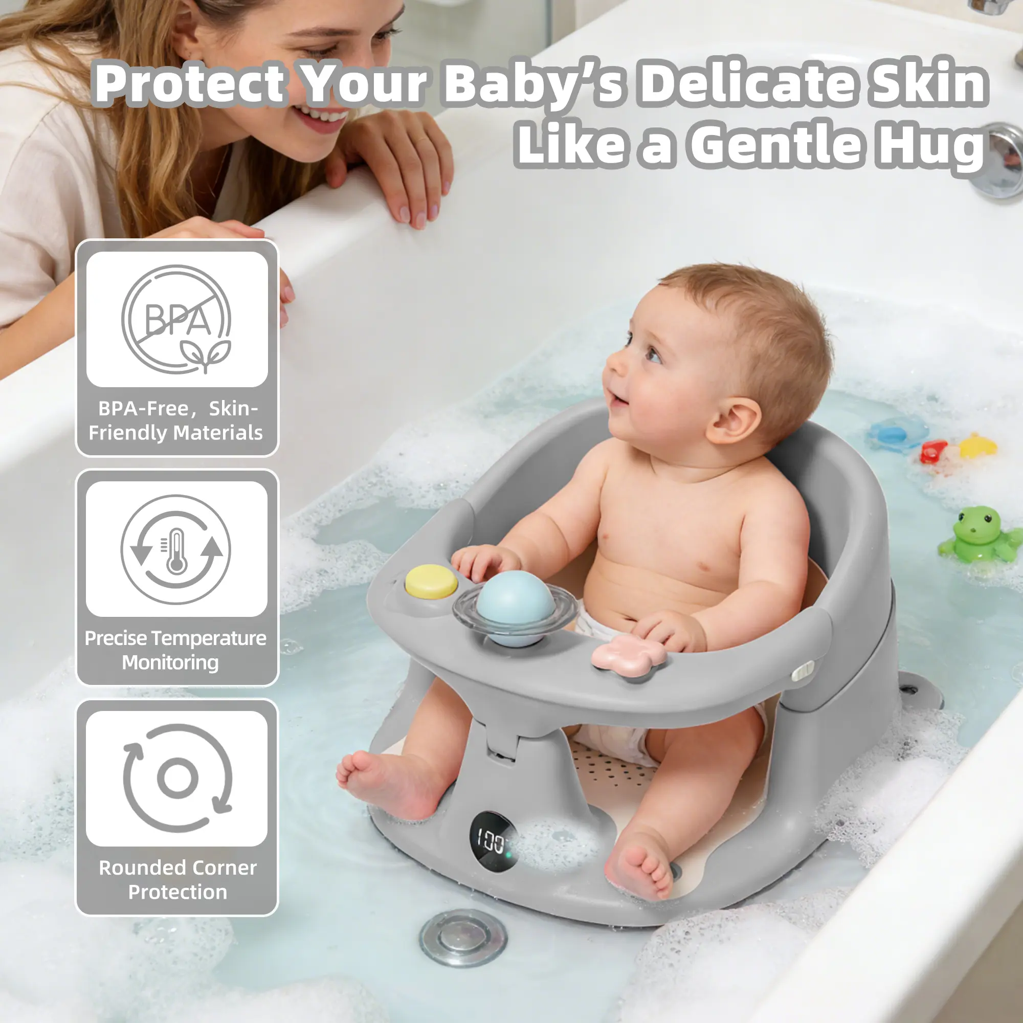 ·Gentle on Delicate Skin – Designed specifically for your baby's tender skin, this baby bath seat features a built-in upgraded temperature display. Simply immerse the base in water to check the water temperature in real time, helping you maintain it within the ideal range for a safer and more reassuring bath experience.