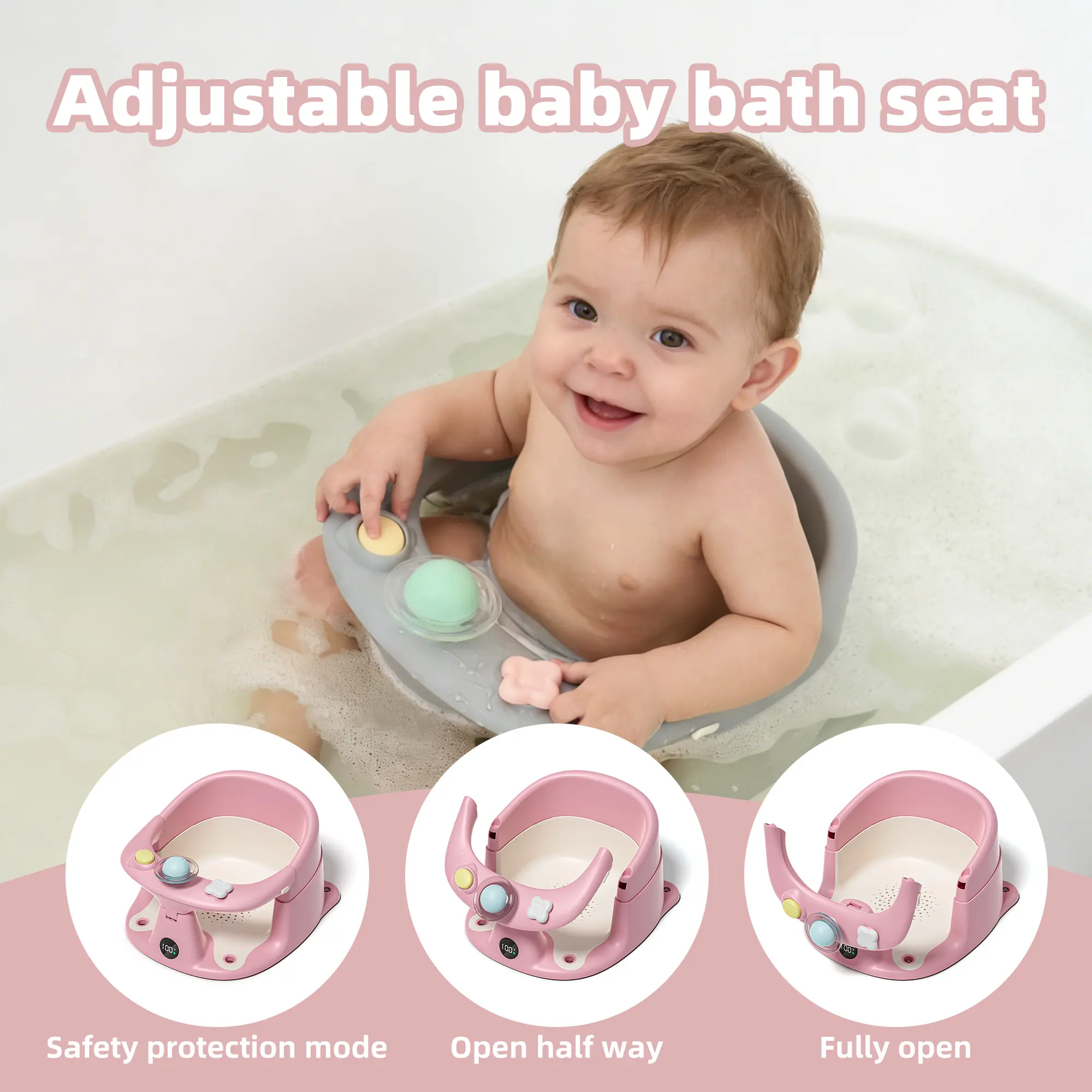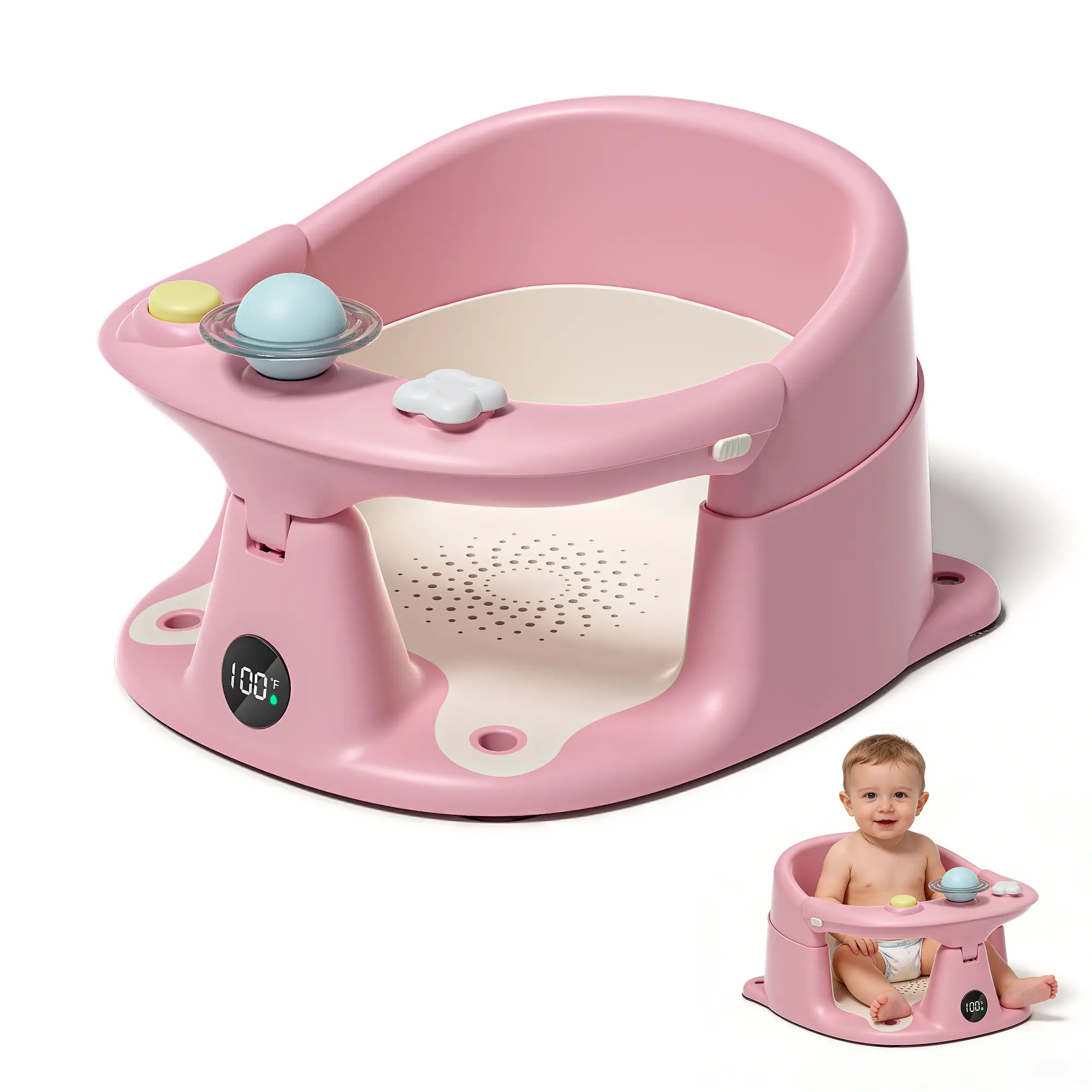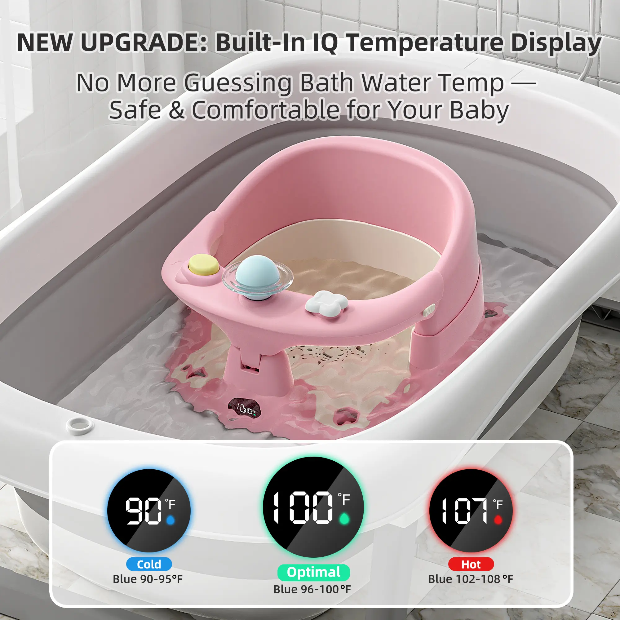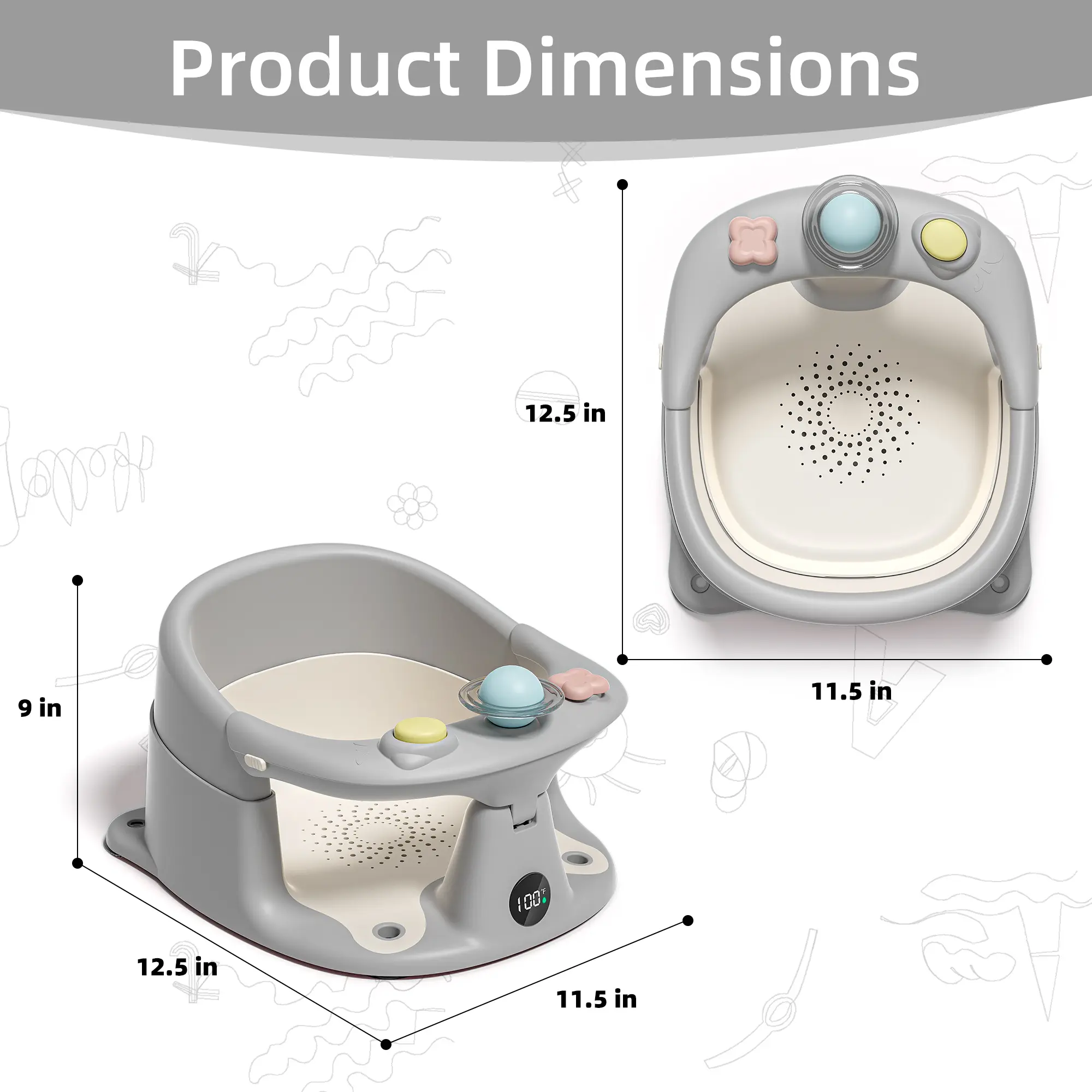 ·Gentle on Delicate Skin – Designed specifically for your baby's tender skin, this baby bath seat features a built-in upgraded temperature display. Simply immerse the base in water to check the water temperature in real time, helping you maintain it within the ideal range for a safer and more reassuring bath experience.
