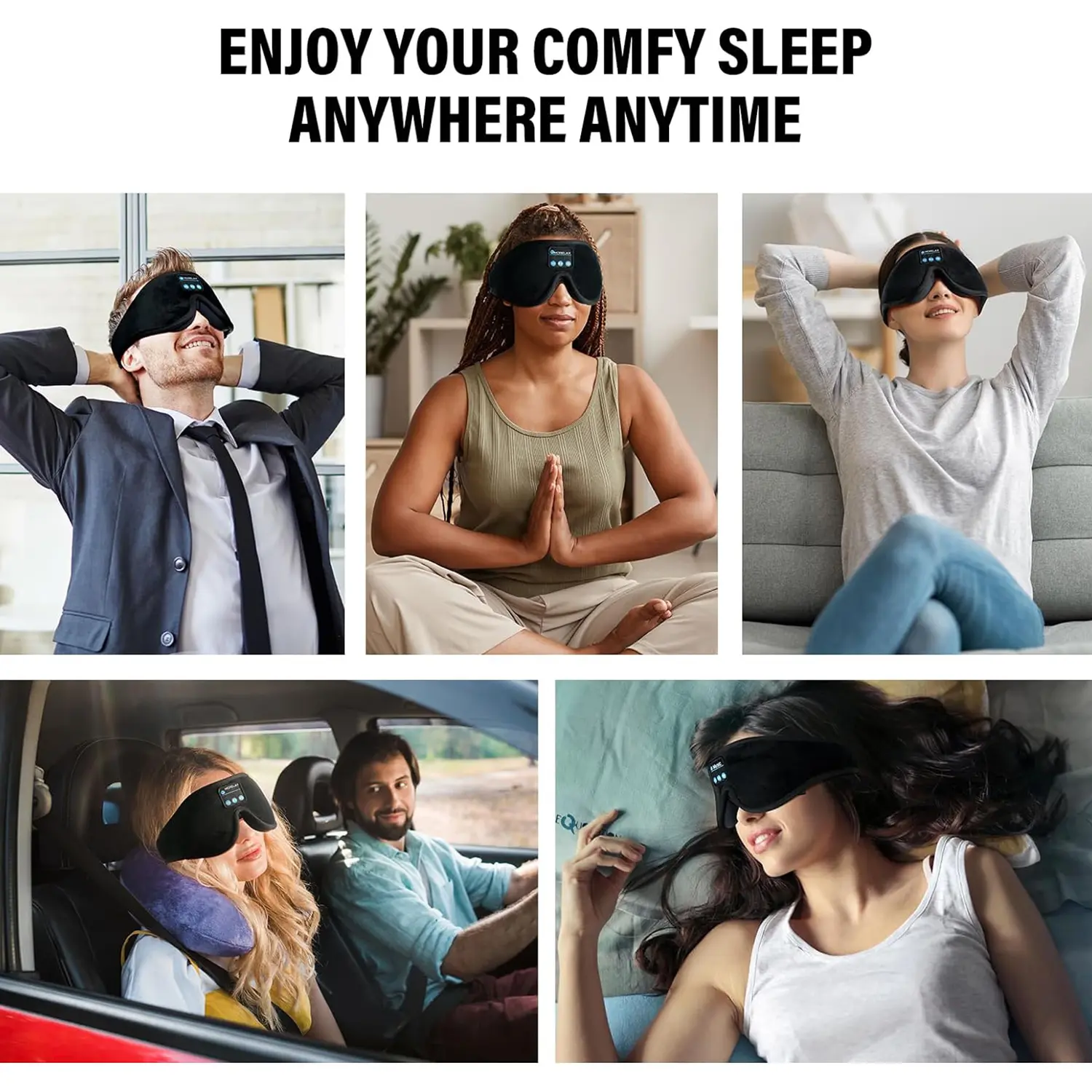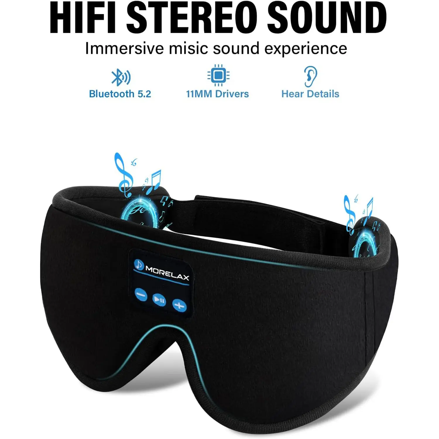 The Morelax Bluetooth sleep mask offers a comfortable eye mask with built-in wireless speakers. It's perfect for hands-free music during sleep. Ideal for naps, insomnia, air travel, meditation, and yoga, enhancing your relaxation and sleep experience. This innovative design ensures you're always connected to your favorite tunes.