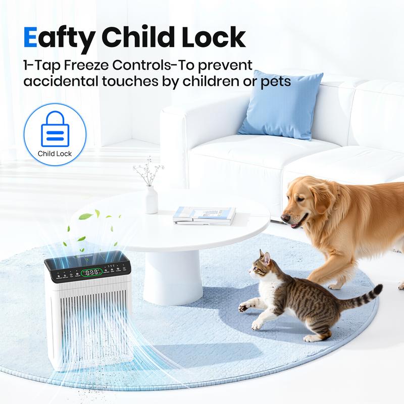 ·Designed for Loving Families with Furry Companions: This home air purifier features a specially designed mode that enhances air purification to effectively capture hair, dander, and odors. By improving indoor air quality, you can enjoy peaceful and happy moments with your beloved furry friends