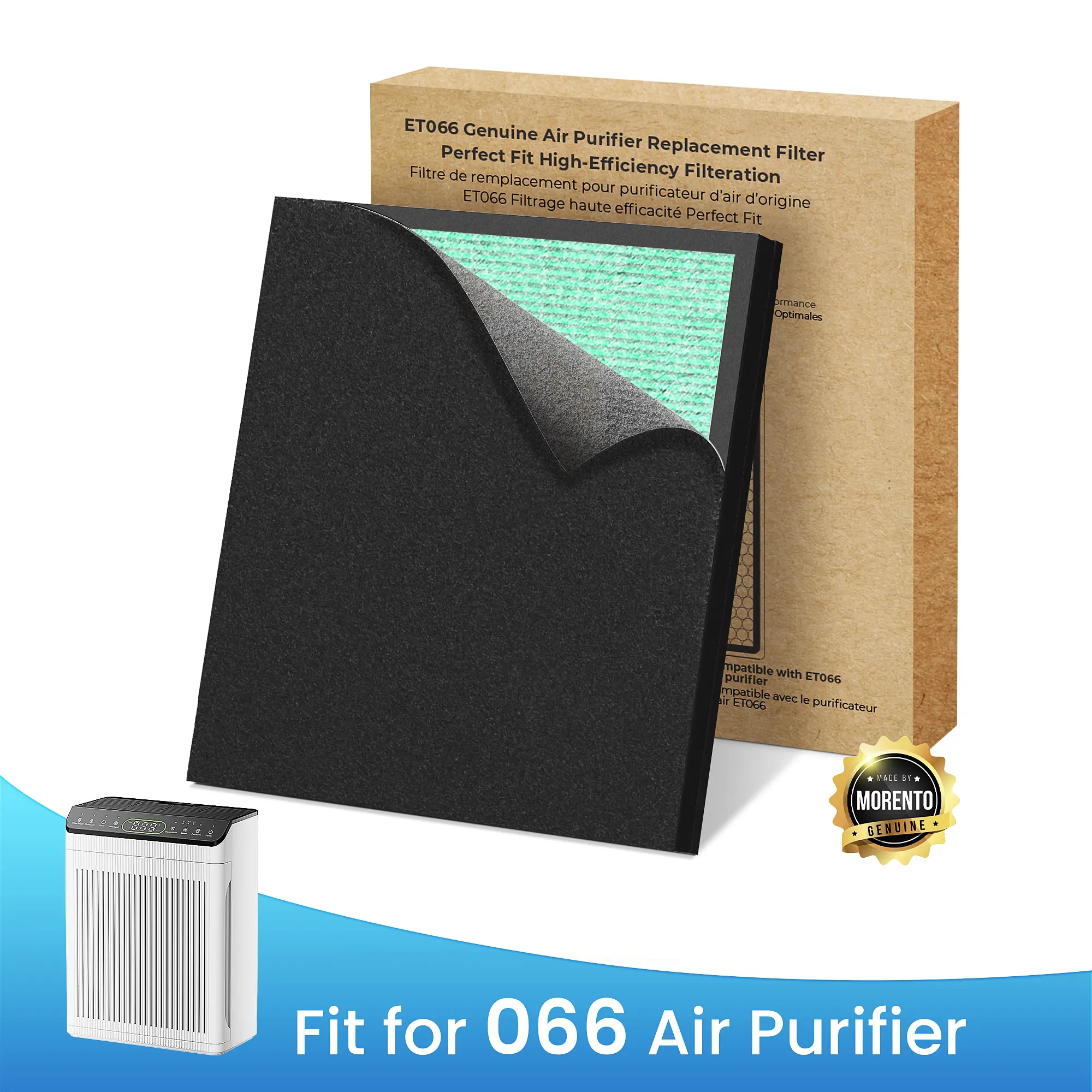 ·Genuine Replacement Filter for 066 Air Purifier: Genuine MORENTO air purifier replacement filters guarantee certified fit and maximum filtration. Off-brand filters frequently fail HEPA testing standards, fit incorrectly, reduce efficacy, and may cause damage to your MORENTO air purifier.Your purifier will only be powerful and effective when paired with Genuine filter.