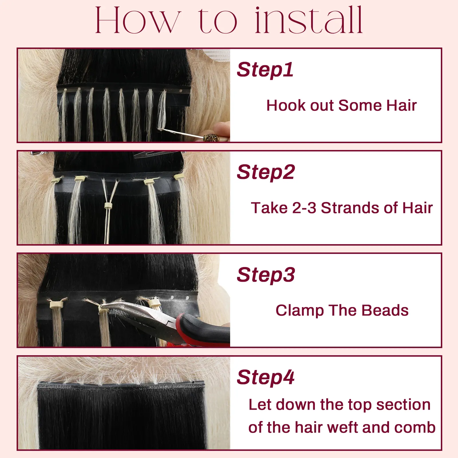 Part your hair, clamp with micro beads, and blend. No glue, tape, or sewing is needed. Ideal for adding fullness while staying comfortable all day.