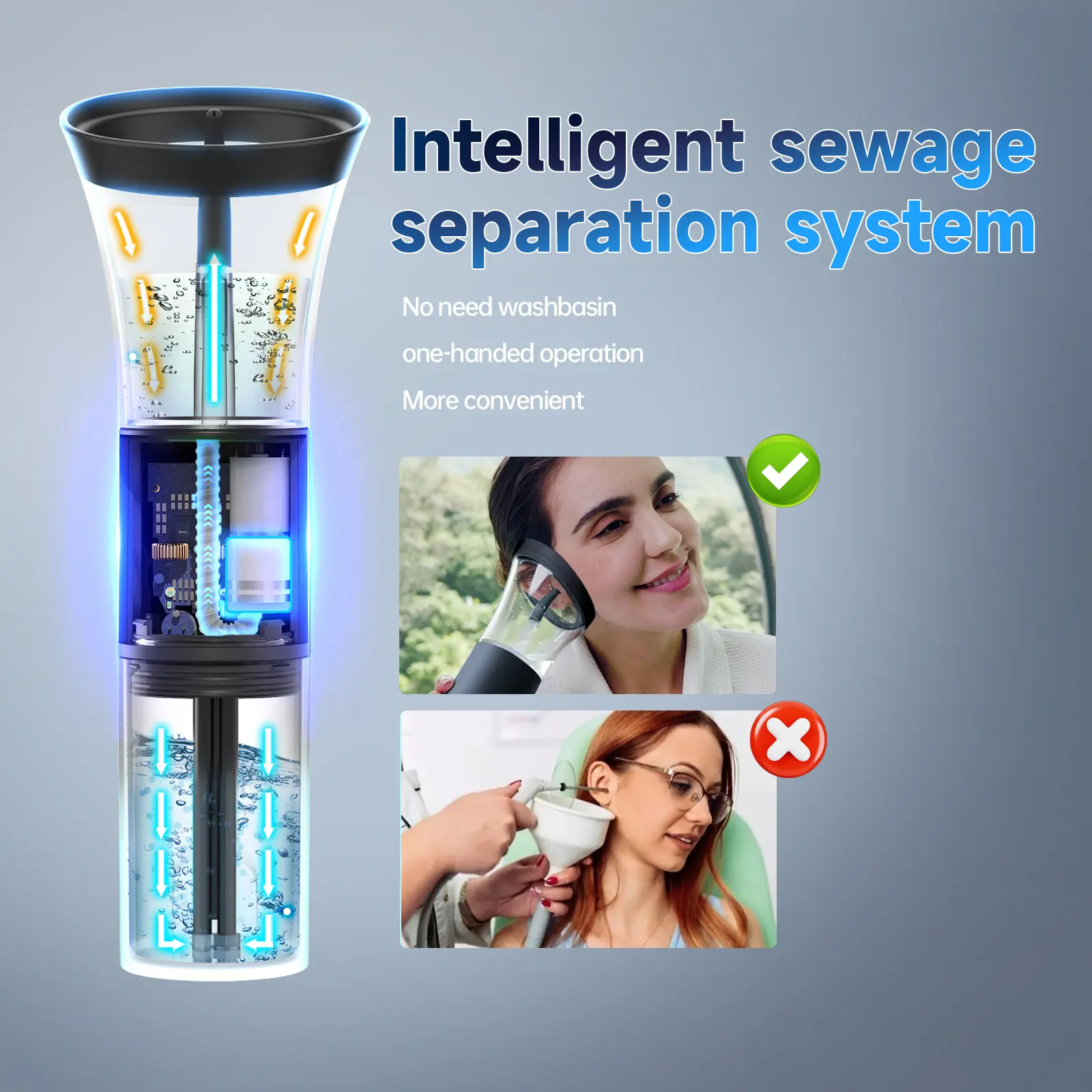 ·Convenient and Hygienic Design: Our latest model features separate compartments for clean water and waste, eliminating the need for hand-held tools to connect to sewage. With integrated sewage treatment and single-hand operation, it's easy to use anywhere.