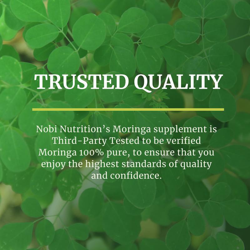 Nobi Nutrition’s Moringa supplement is third-party tested for 100% purity. Enjoy the highest quality and confidence with every capsule.
