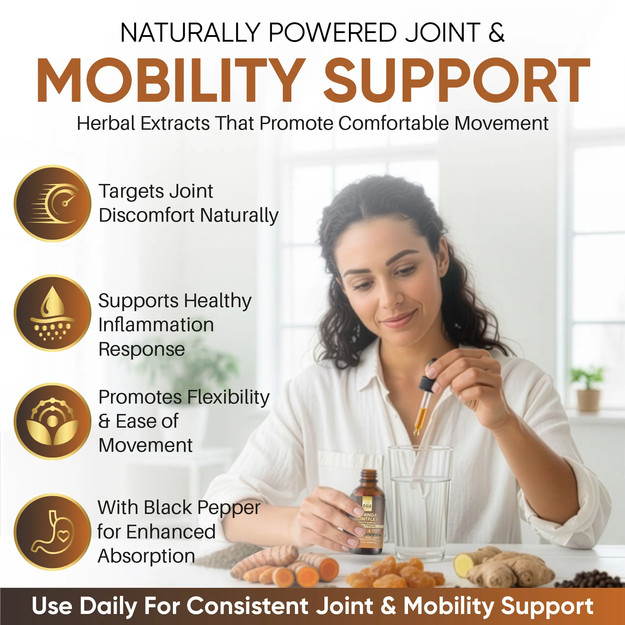 • Herbal liquid extract formulated to support joint comfort and mobility