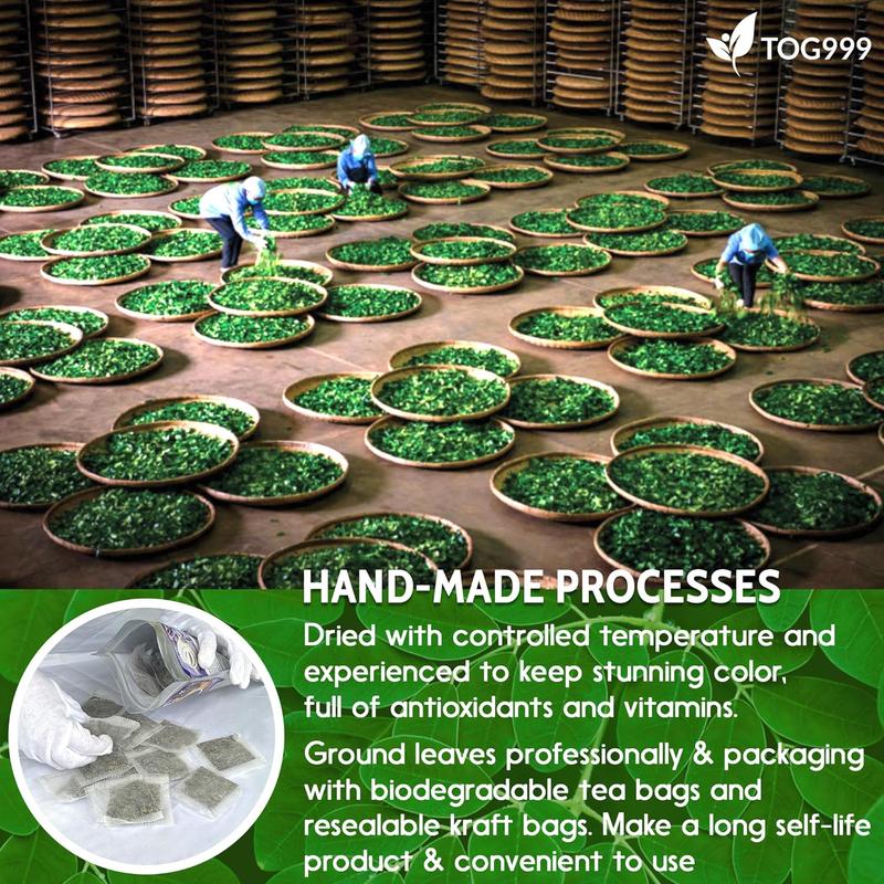 ·FROM FRESHLY PICKED, NATURALLY DRIED MORINGA LEAVES: The best Moringa leaves are picked at a decent time, washed with fresh water, dried in the sun, ground with years of experience to the best tea size, and carefully packed to preserve the flavor and distinct aromatic effect.