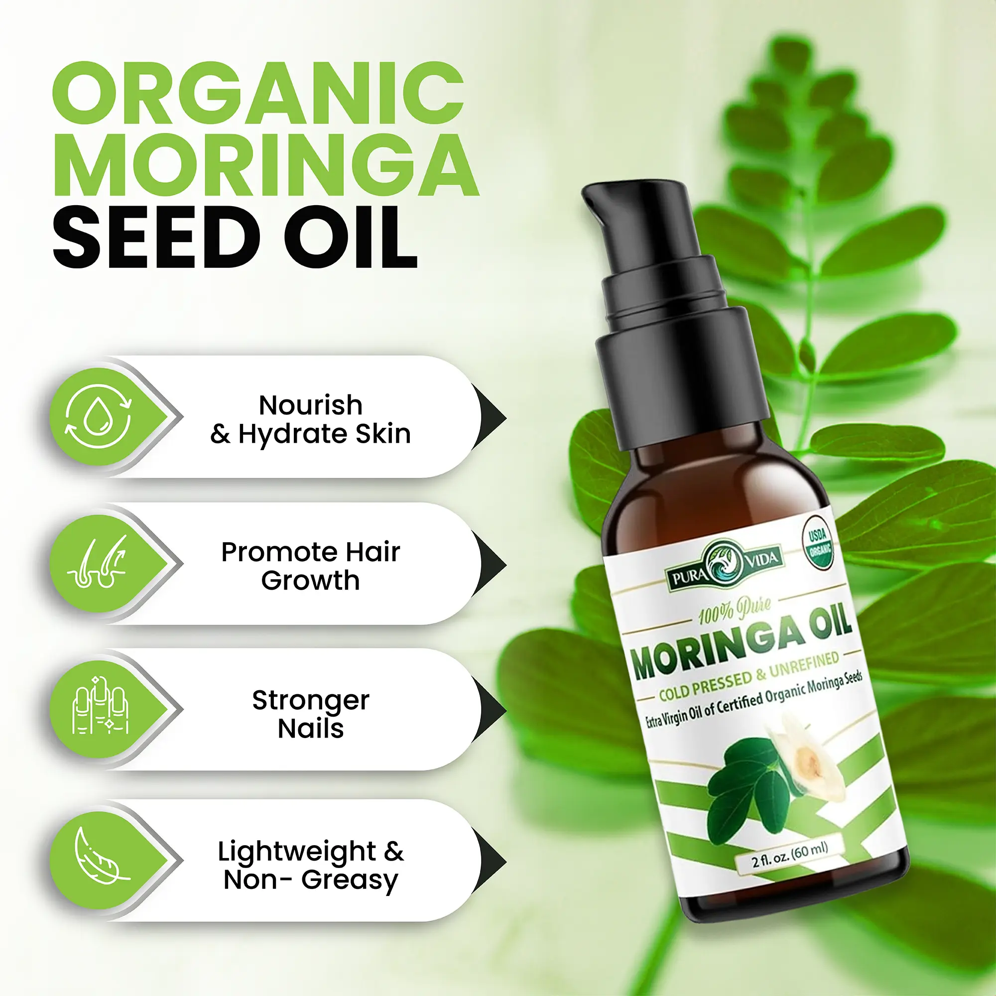 “I love that Pure Vita Moringa is exactly what it says—100% pure, with no fillers or additives. I just got the oil and excited to use it Since adding capsules to my routine, I feel more energized, focused, and balanced. Highly recommend!”