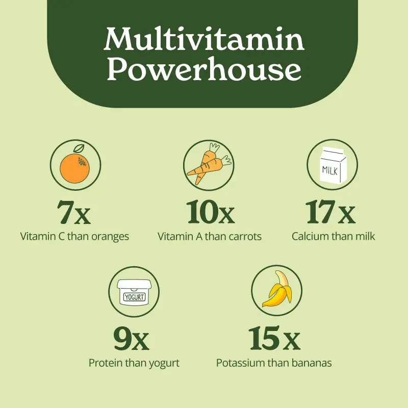 ·Packed with a bunch of essential vitamins, minerals, and antioxidants, this powder may help support energy levels, immunity, promote robust health, and might aid with vital nutritional needs.