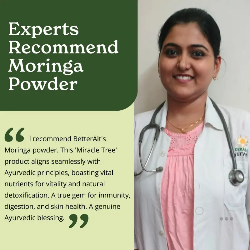 ·BetterAlt Moringa Powder is derived from the Indian Moringa tree, celebrated in Ayurvedic medicine for a vast holistic wellness profile.