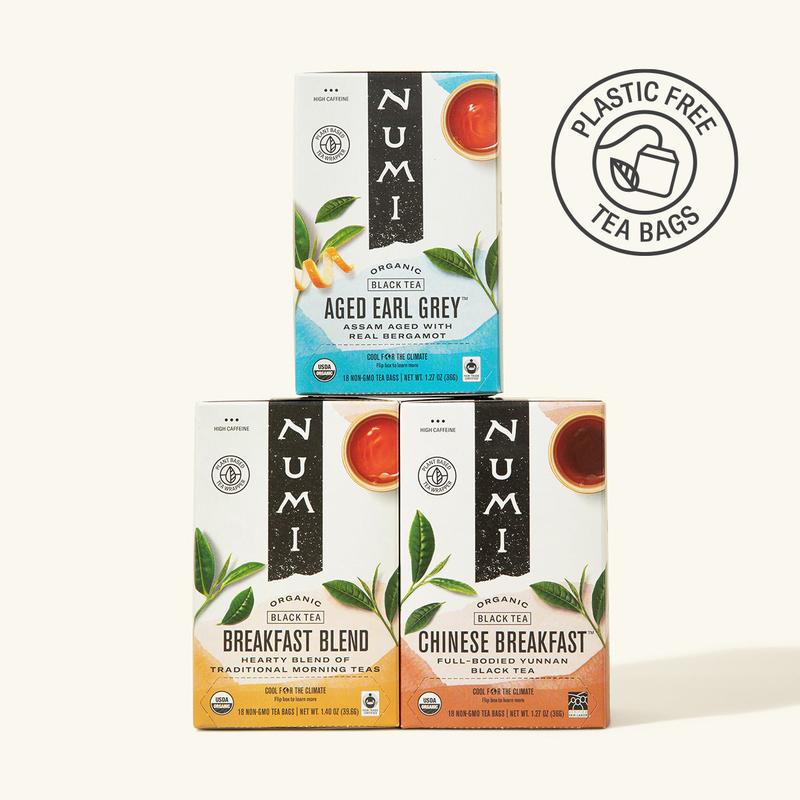 The ideal way to start your day, our Morning Black Tea Variety Pack features fuller-leaf, full-bodied black teas. This set offers a flavorful morning ritual with natural energy boost to kick off your day. Numi’s Aged Earl Grey is the #1-selling Earl Grey in natural food grocers nationwide! Each pack contains 3 boxes of organic teas (54 total tea bags): Aged Earl Grey: Assam tea aged with citrus notes of real Italian bergamot orange