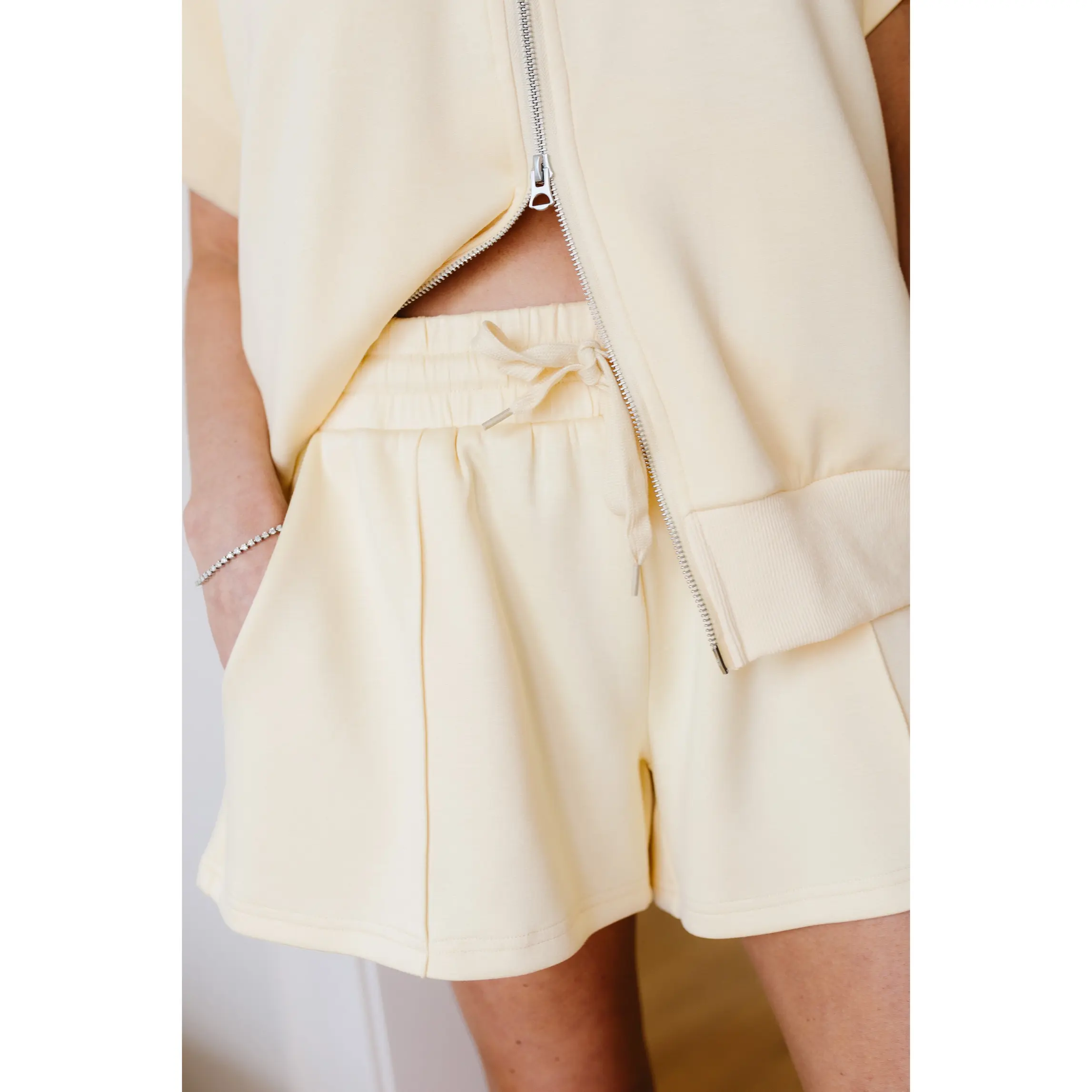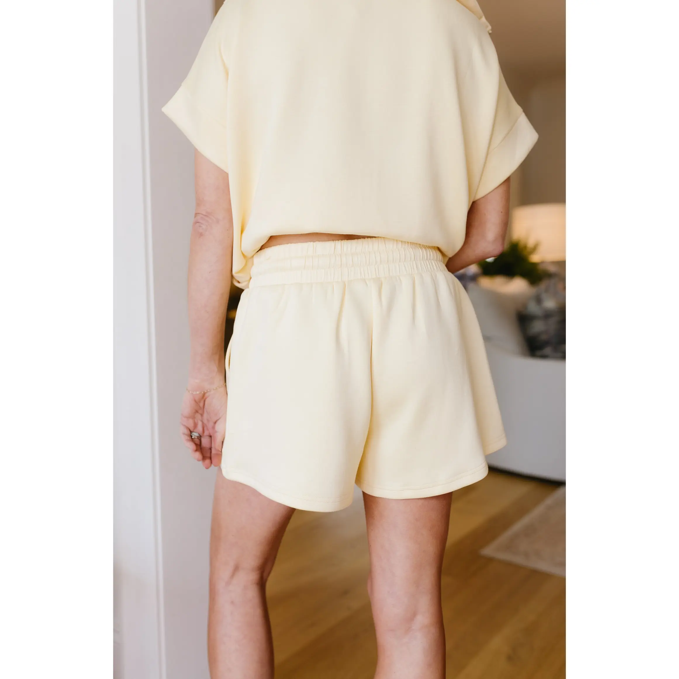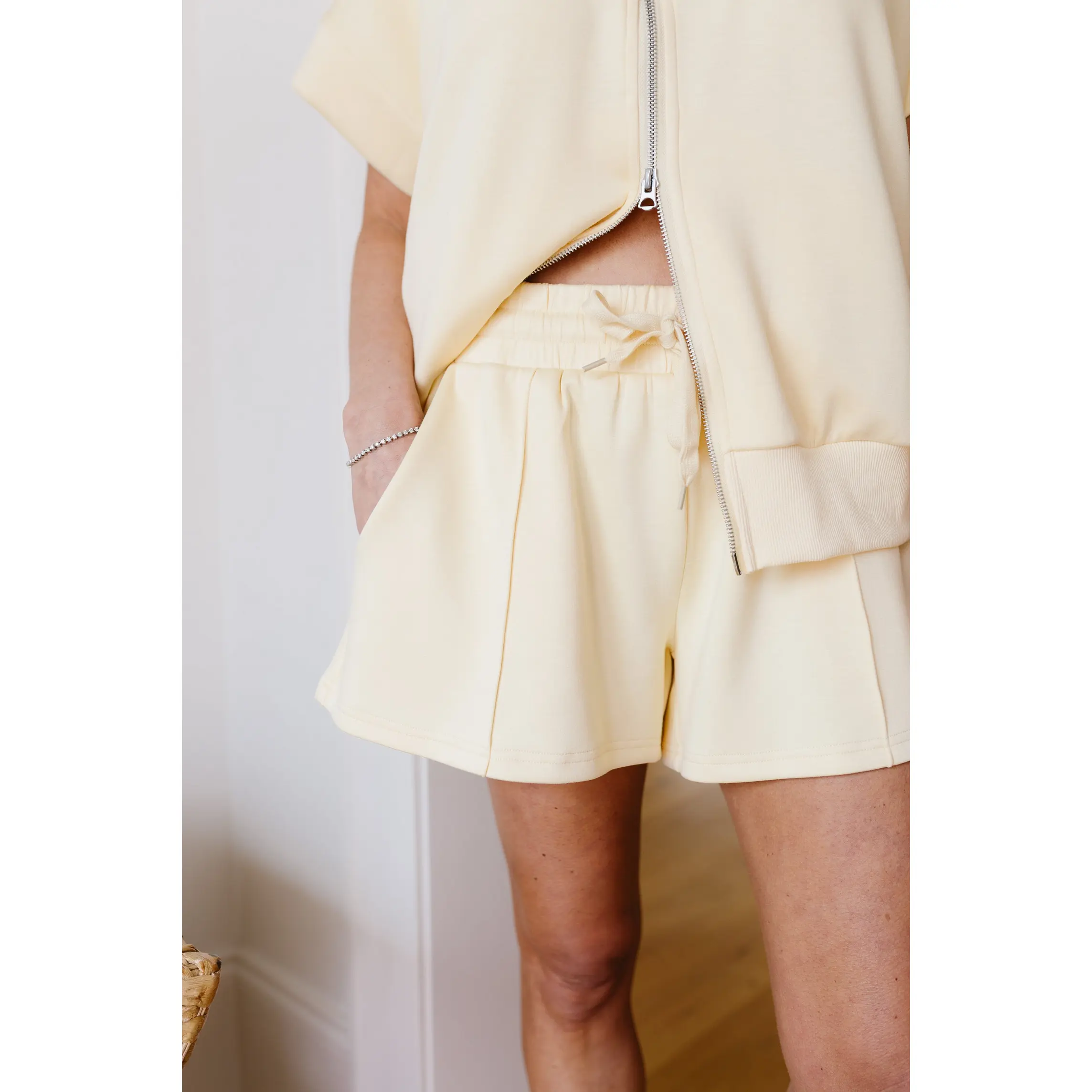 ·Butter yellow knit shorts
