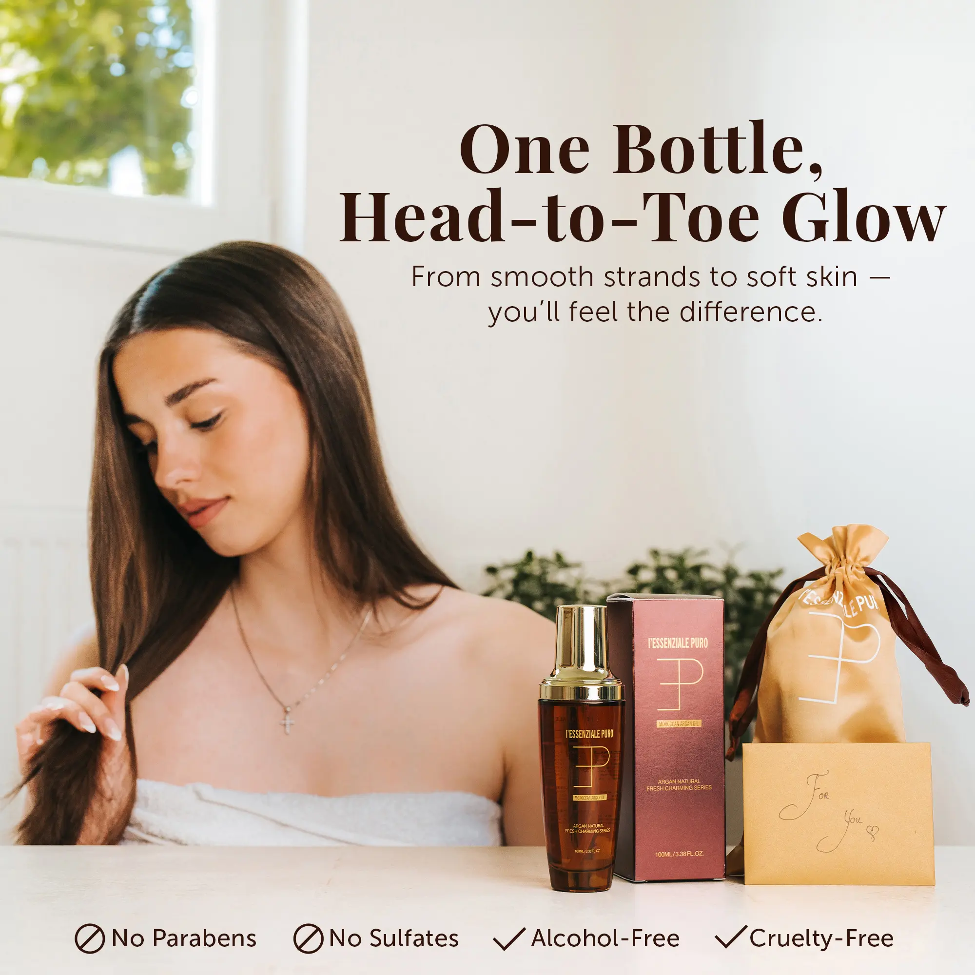 💫 Formulated in Australia, Imported from Dubai: This argan oil serum offers a worldwide luxury fragrance you'll adore. This premium elixir is ideal for all hair types, ensuring softness and radiance. Say goodbye to dry, brittle strands. Add shine, control frizz, repair dry ends, and moisturize skin with L'Essenziale Puro Moroccan Argan Oil (100ml, 3.38 Fl Oz).
