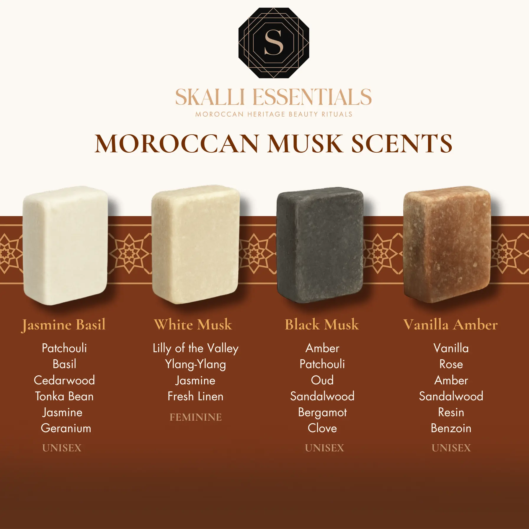 Moroccan musk bars have been used for centuries as a natural fragrance to be enjoyed by all! With notes of rich oud, roses, amber, jasmine, and vanilla, it has a warm, earthy, and floral clean scent. Please note that a little goes a long way, these bars will last you years! Although traditional Moroccan Musk is made from deer glands, this bar is 100% vegan.