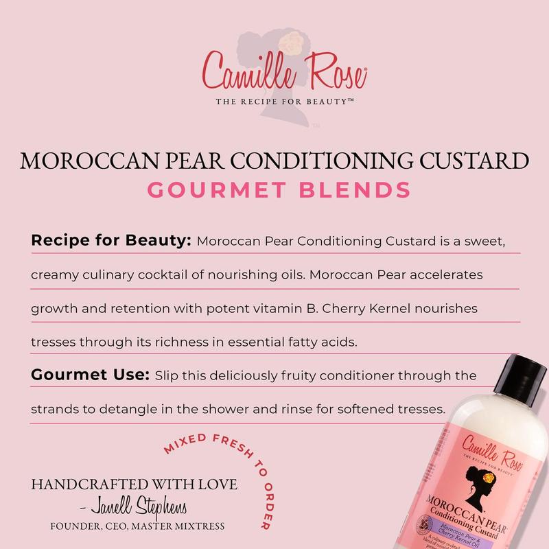 Moroccan Pear Conditioning Custard is a luxurious blend of nourishing oils to soften and protect the hair's moisture barrier.