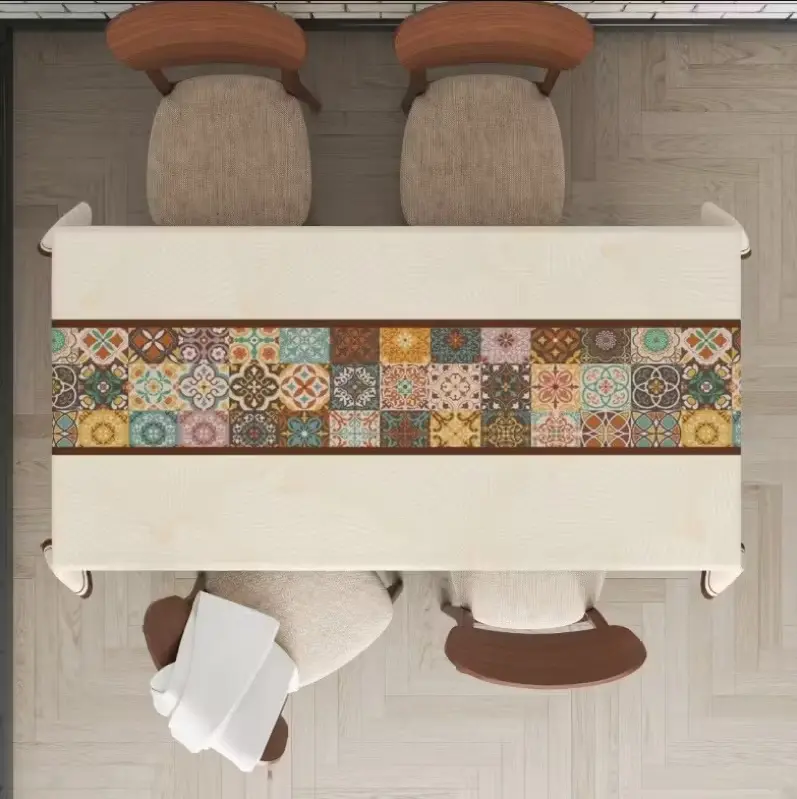 ·Design: This rectangular tablecloth features a Bohemian patchwork design, inspired by Moroccan style. 🌵