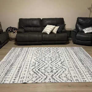 Moroccan-Style Design: This area rug features a Moroccan-inspired pattern, combining geometric lines and shapes that effortlessly complement any interior design style.
