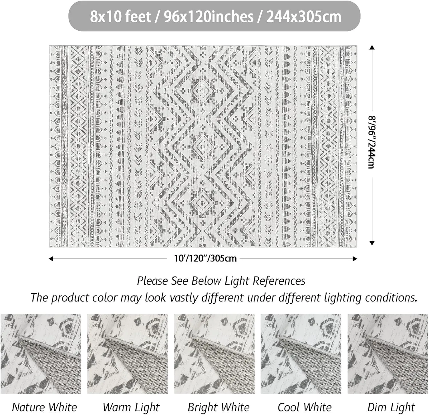 Plush Comfort: Our 8x10 area rugs features a 0.24-inch low-pile design that is soft, shed-resistant, and ideal for high-traffic areas such as the living room, dining room, and bedroom.