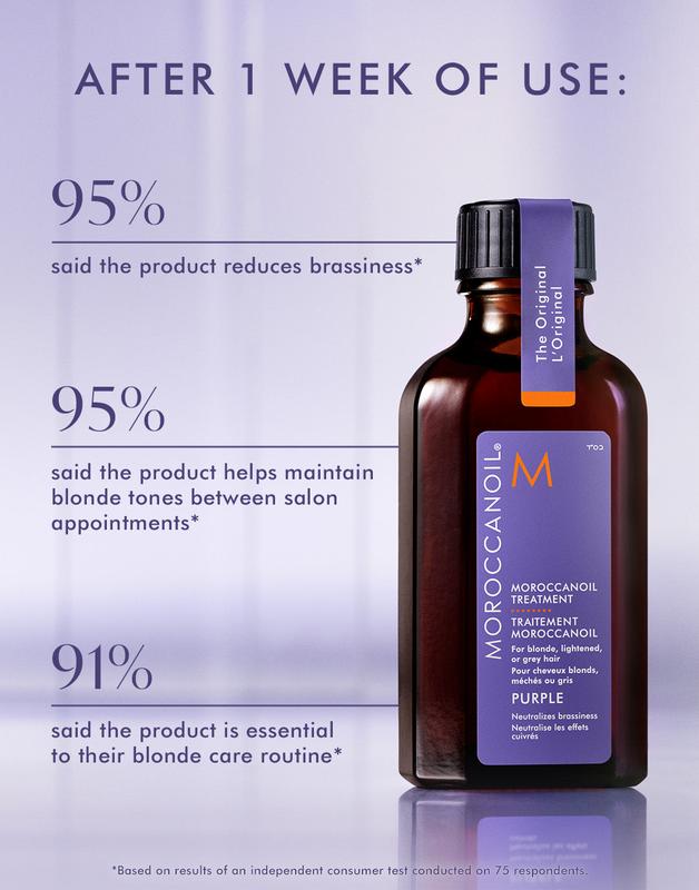 • 95% of consumers surveyed said that Moroccanoil Treatment Purple refreshes highlights in just one use!*